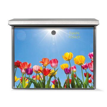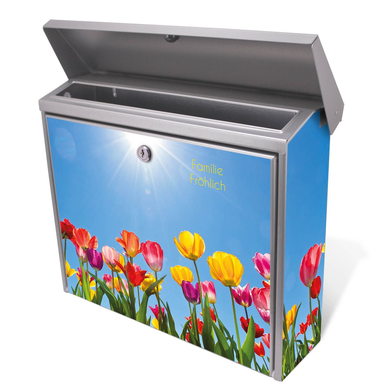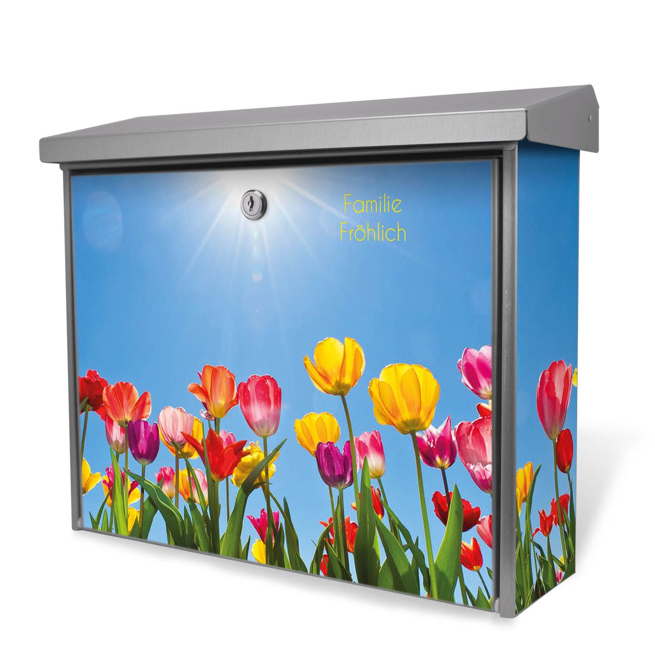 Der Postkasten mit Tulpenmeer Motiv hat ein sehr ansprechendes und zeitloses Design. Unsere Motivpalette hält jede Menge Varianten bereit, ob klassisch, modern, verspielt oder witzig - für jeden haben wir das passende Motiv parat. Der Briefkasten ist das Aushängeschild Ihres Hauses.