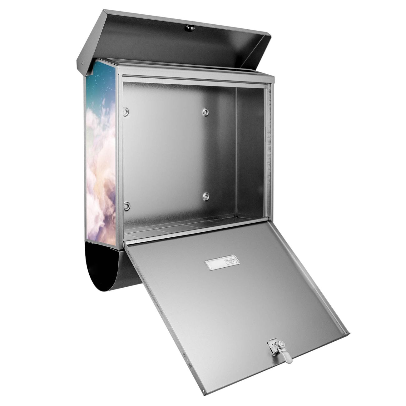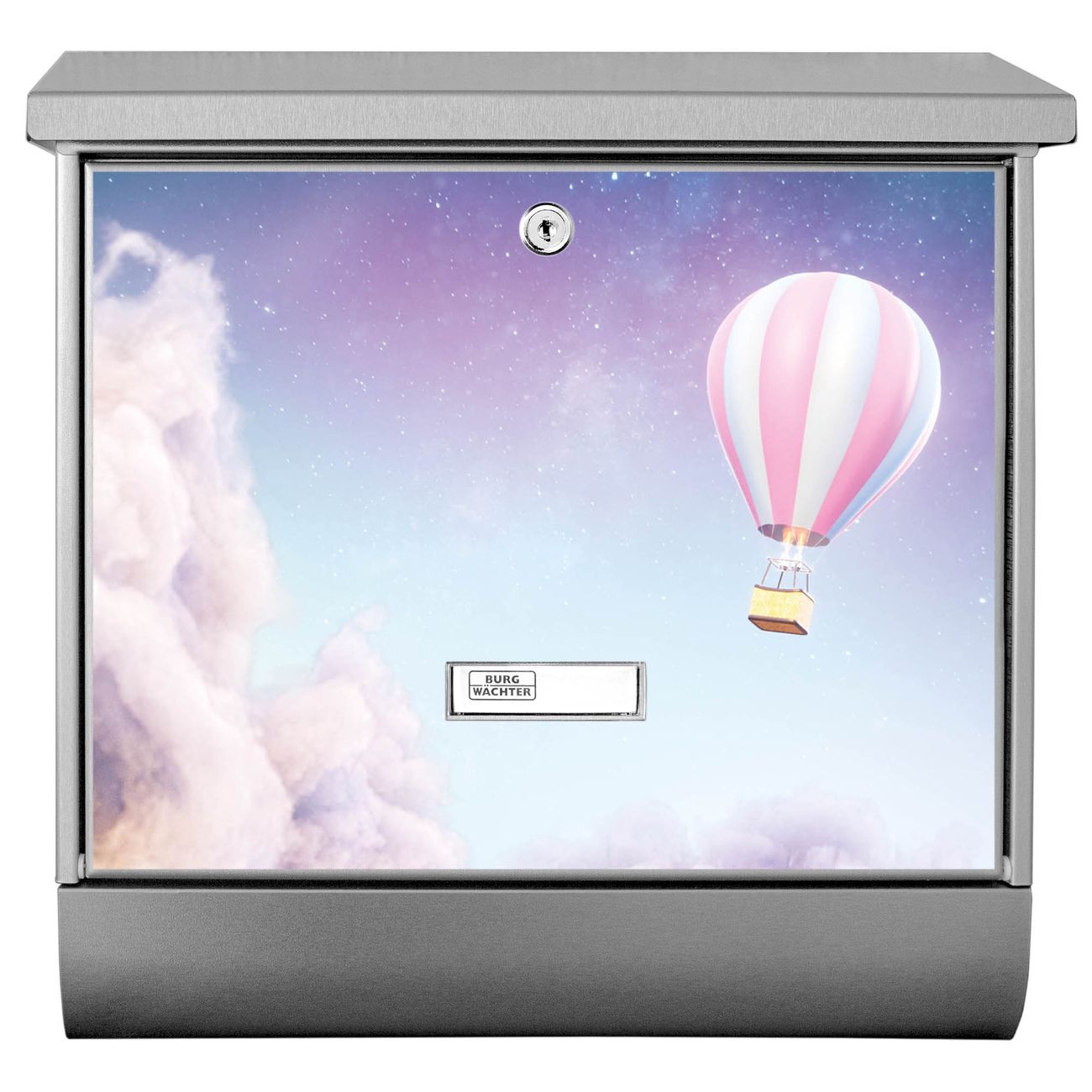 Der Über den Wolken Motivbriefkasten hat ein sehr ansprechendes und zeitloses Design. Unsere Motivpalette hält jede Menge Varianten bereit, ob klassisch, modern, verspielt oder witzig - für jeden haben wir das passende Motiv parat. Der Briefkasten mit Zeitungsfach ist Ihr Aushängeschild, heben Sie Sich ab ohne auf Funktionalität zu verzichten.