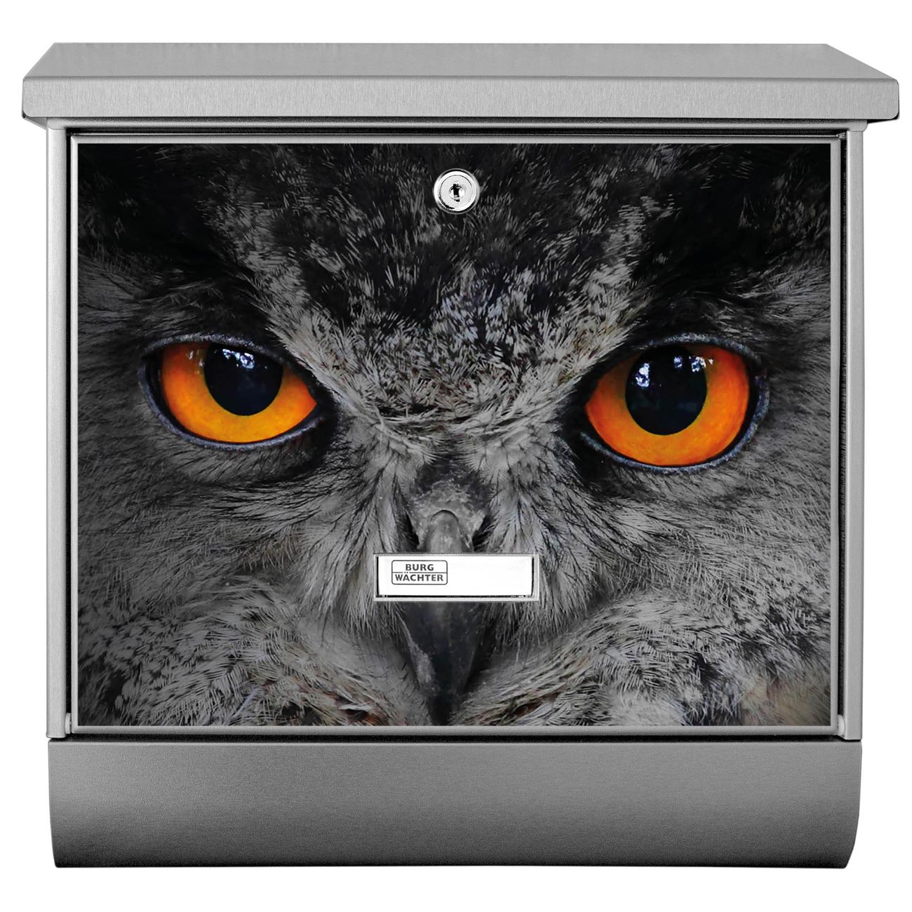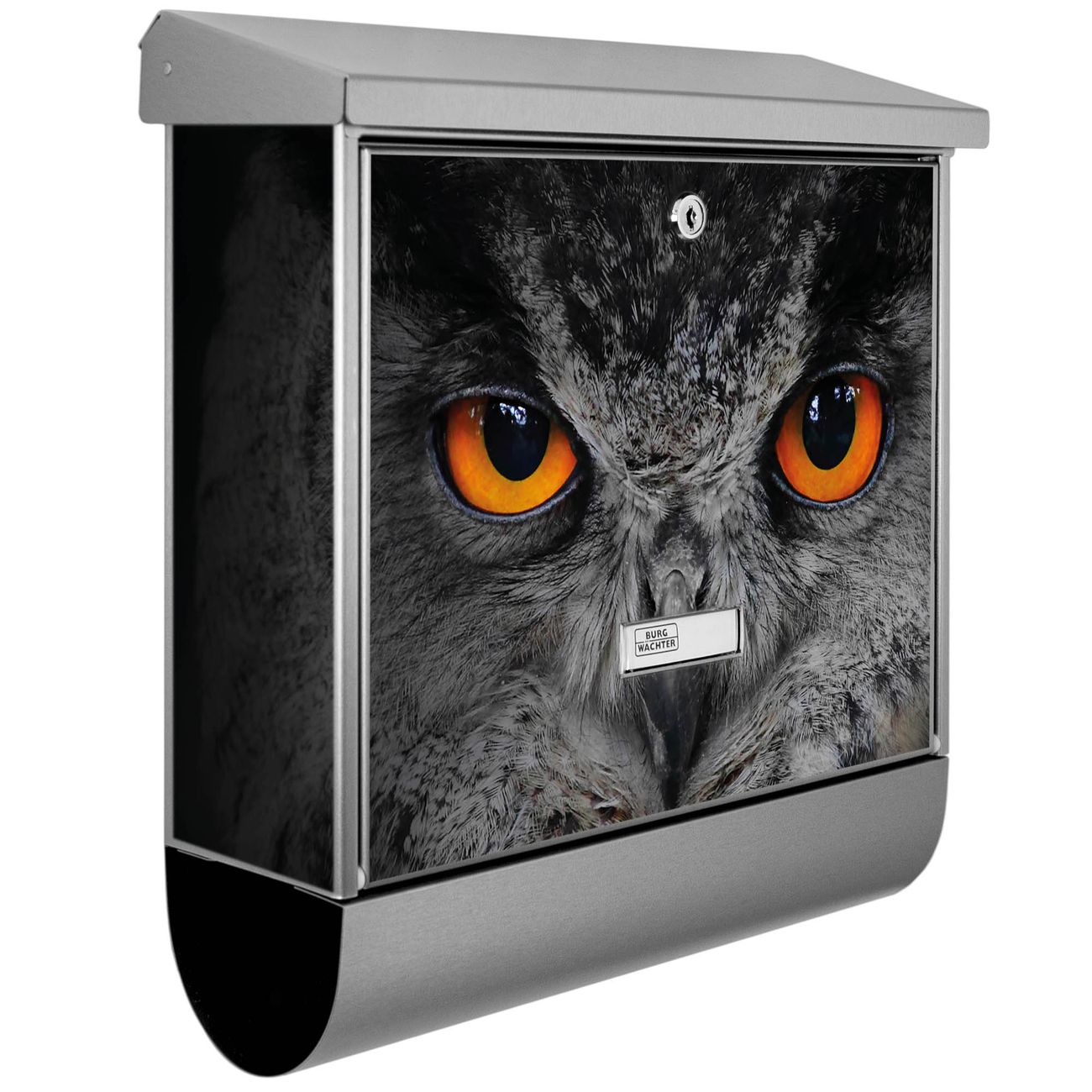 Der BURG-WÄCHTER Edelstahl Briefkasten mit Motiv Uhu und Zeitungsrolle bietet Ihnen mit seinem Fassungsvermögen genügend Platz auch für große A4 Sendungen und Zeitschriften. Das integrierte Regendach schützt Ihre Post vor dem Eindringen von Regen.
