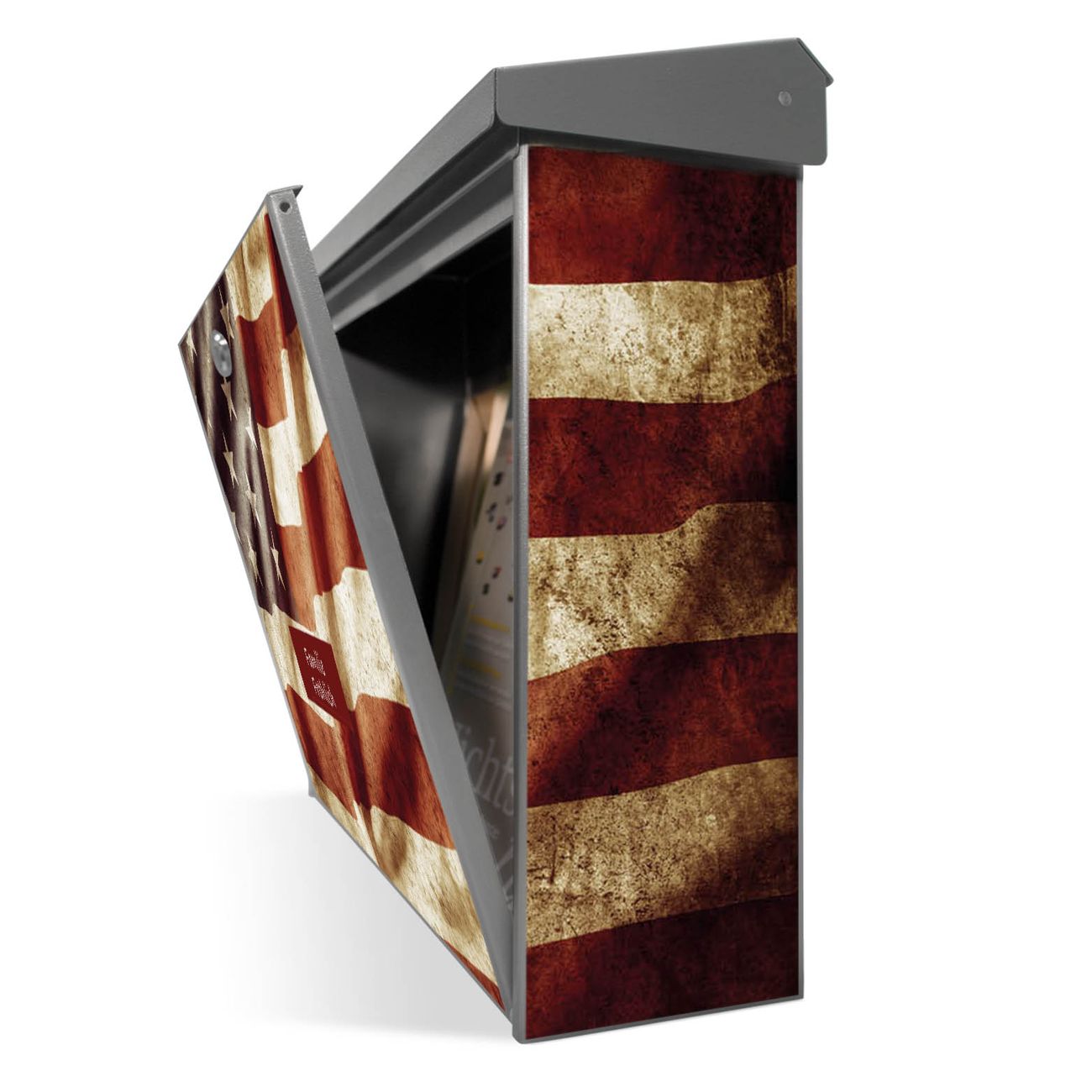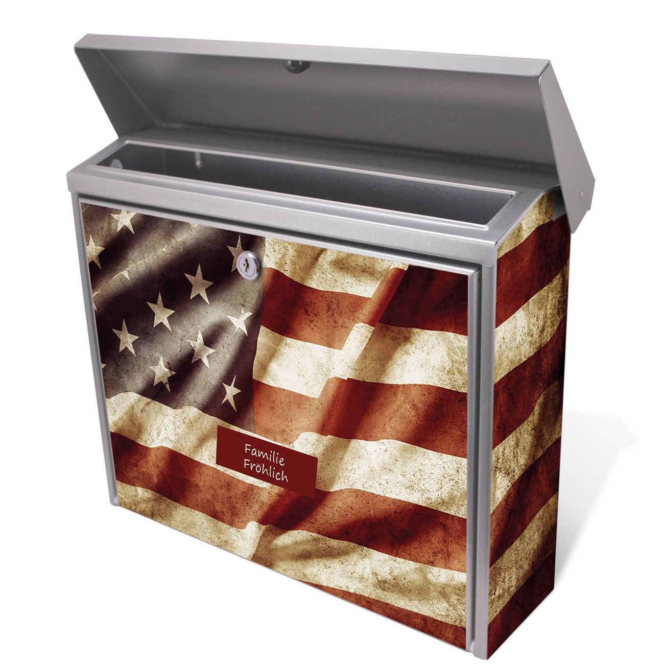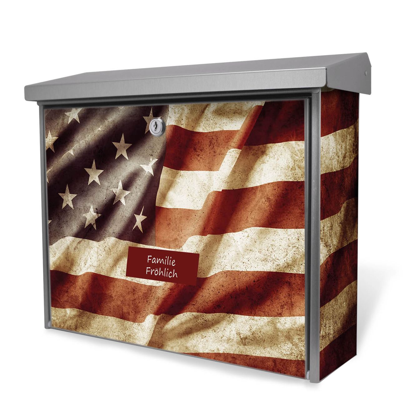 Der Postkasten mit United States Motiv hat ein sehr ansprechendes und zeitloses Design. Unsere Motivpalette hält jede Menge Varianten bereit, ob klassisch, modern, verspielt oder witzig - für jeden haben wir das passende Motiv parat. Der Briefkasten ist das Aushängeschild Ihres Hauses.