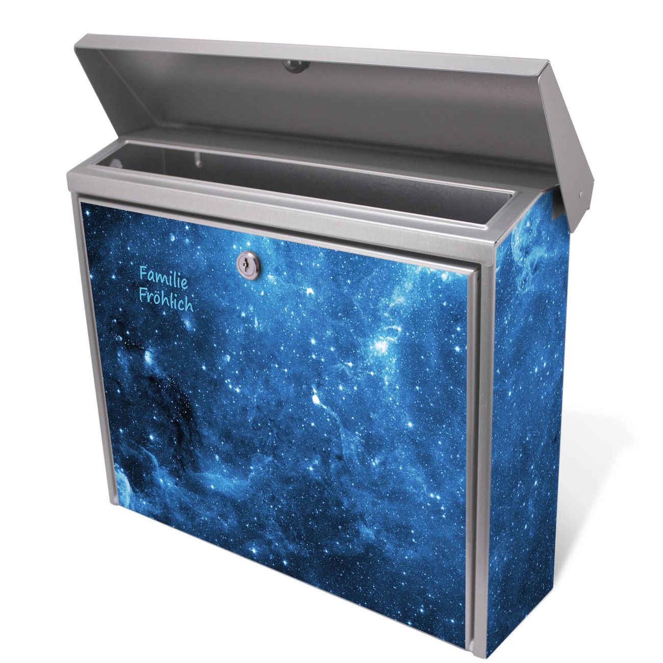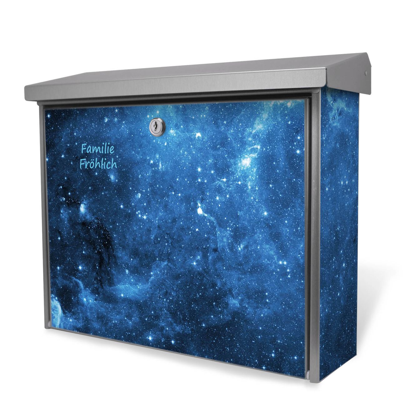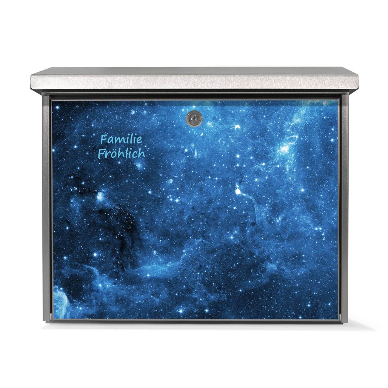 Der Postkasten mit Universum Motiv hat ein sehr ansprechendes und zeitloses Design. Unsere Motivpalette hält jede Menge Varianten bereit, ob klassisch, modern, verspielt oder witzig - für jeden haben wir das passende Motiv parat. Der Briefkasten ist das Aushängeschild Ihres Hauses.