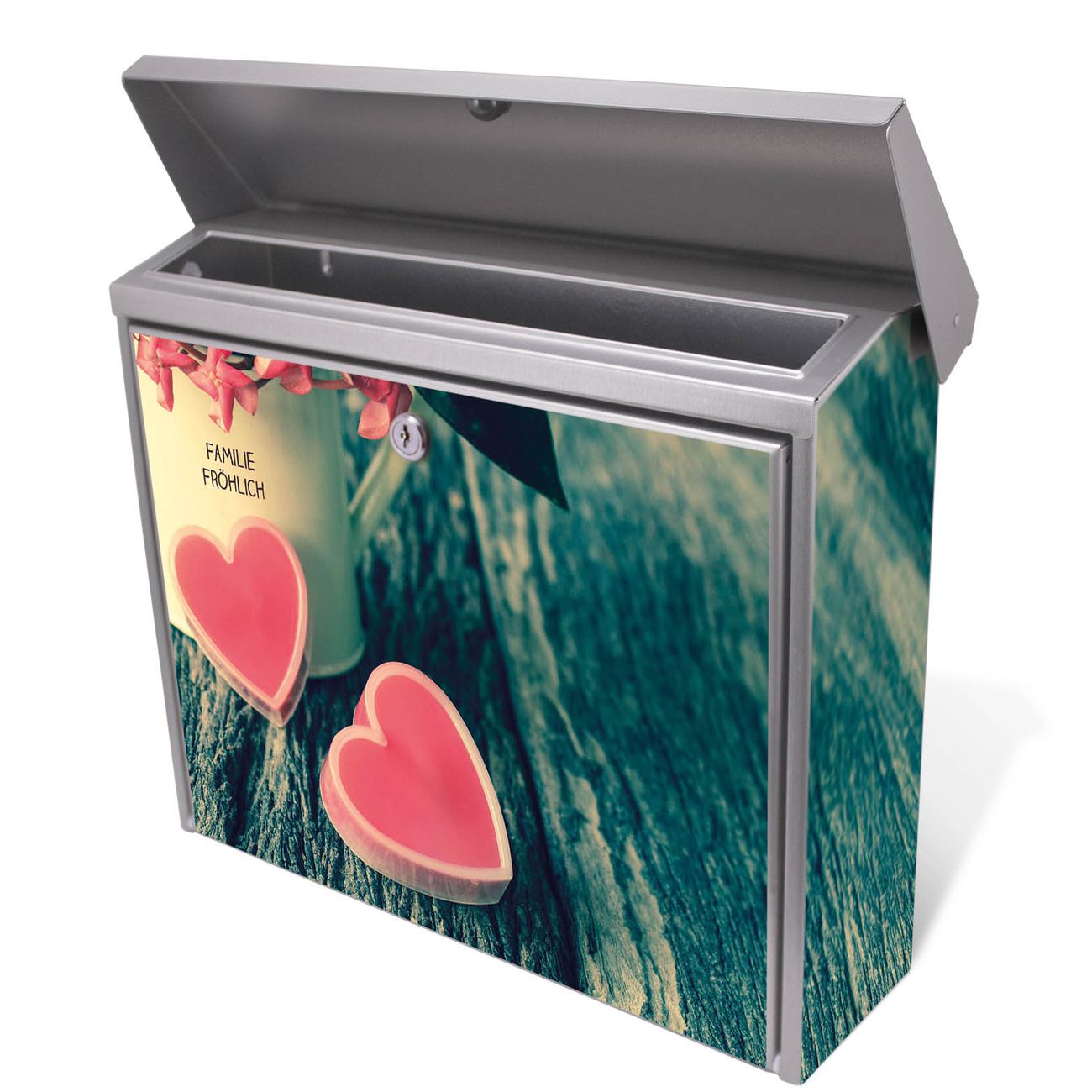 Der Postkasten mit Valentin Motiv hat ein sehr ansprechendes und zeitloses Design. Unsere Motivpalette hält jede Menge Varianten bereit, ob klassisch, modern, verspielt oder witzig - für jeden haben wir das passende Motiv parat. Der Briefkasten ist das Aushängeschild Ihres Hauses.