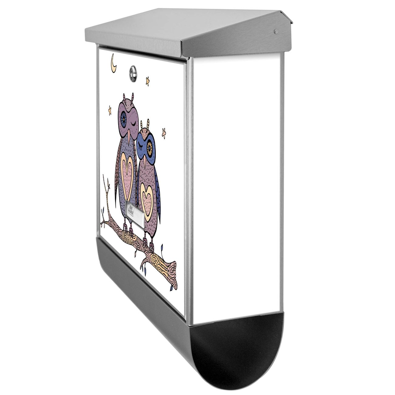 Der Verliebte Eulen Motivbriefkasten hat ein sehr ansprechendes und zeitloses Design. Unsere Motivpalette hält jede Menge Varianten bereit, ob klassisch, modern, verspielt oder witzig - für jeden haben wir das passende Motiv parat. Der Briefkasten mit Zeitungsfach ist Ihr Aushängeschild, heben Sie Sich ab ohne auf Funktionalität zu verzichten.