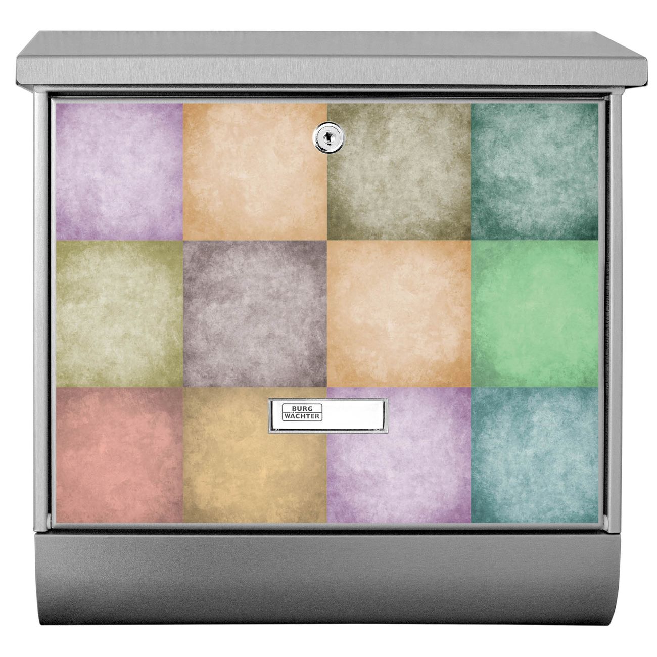 Der Verwaschene Quadrate Motivbriefkasten hat ein sehr ansprechendes und zeitloses Design. Unsere Motivpalette hält jede Menge Varianten bereit, ob klassisch, modern, verspielt oder witzig - für jeden haben wir das passende Motiv parat. Der Briefkasten mit Zeitungsfach ist Ihr Aushängeschild, heben Sie Sich ab ohne auf Funktionalität zu verzichten.