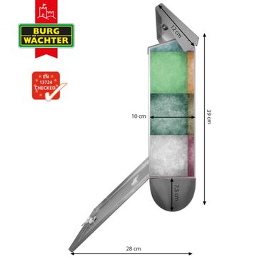 Der BURG-WÄCHTER Edelstahl Briefkasten mit Motiv Verwaschene Quadrate und Zeitungsrolle bietet Ihnen mit seinem Fassungsvermögen genügend Platz auch für große A4 Sendungen und Zeitschriften. Das integrierte Regendach schützt Ihre Post vor dem Eindringen von Regen.