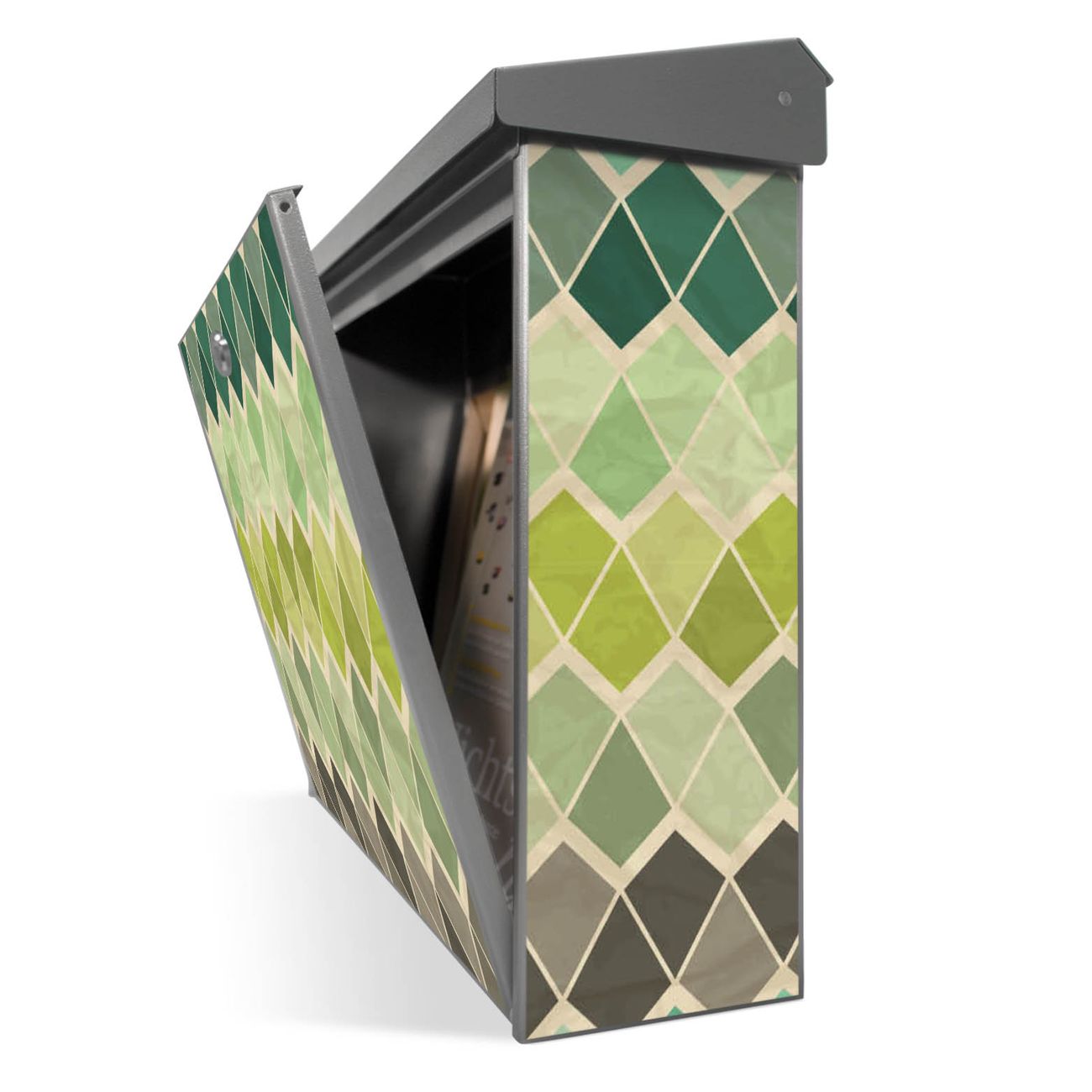 Der Postkasten mit Vier Farben Grün Motiv hat ein sehr ansprechendes und zeitloses Design. Unsere Motivpalette hält jede Menge Varianten bereit, ob klassisch, modern, verspielt oder witzig - für jeden haben wir das passende Motiv parat. Der Briefkasten ist das Aushängeschild Ihres Hauses.