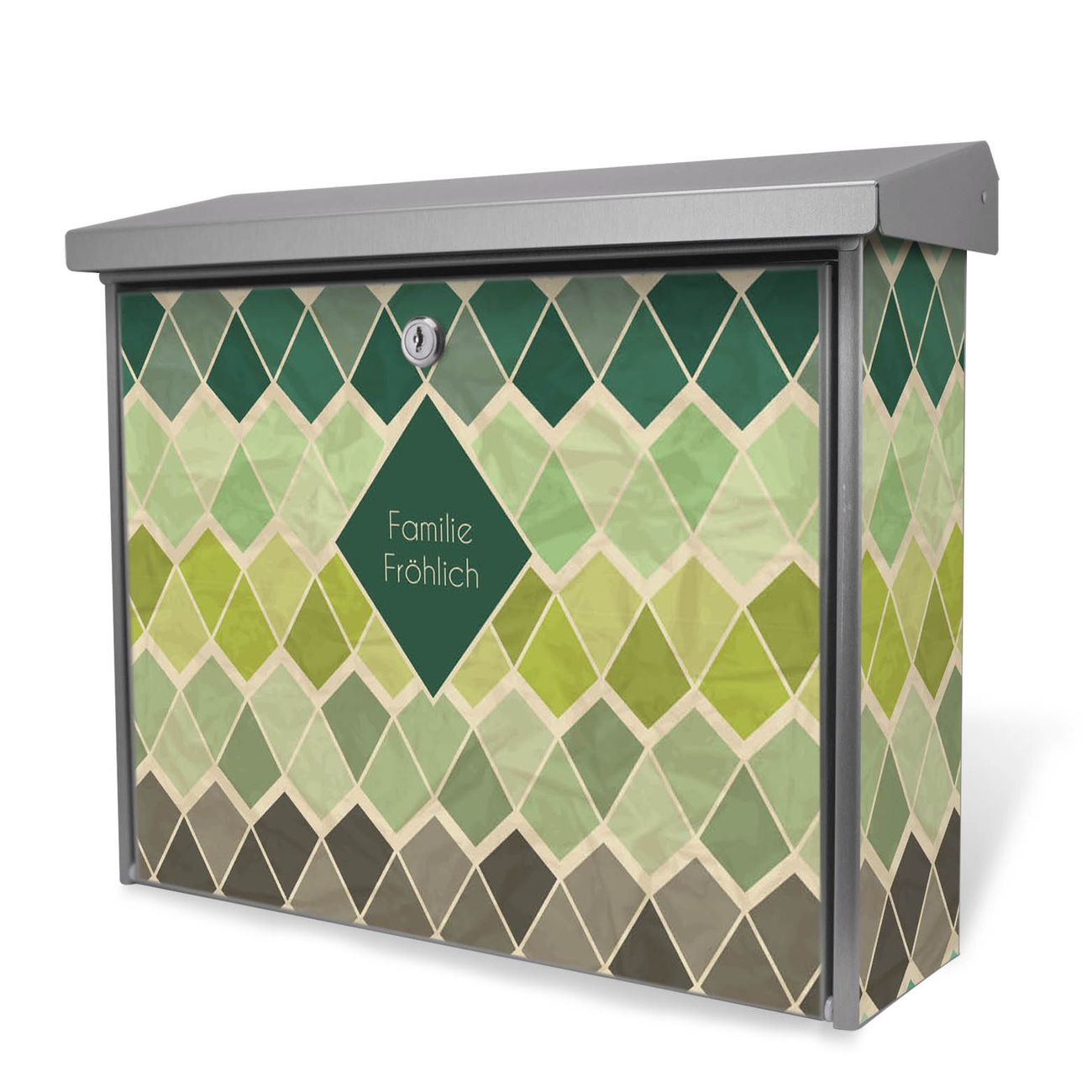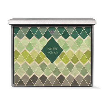 Der Postkasten mit Vier Farben Grün Motiv hat ein sehr ansprechendes und zeitloses Design. Unsere Motivpalette hält jede Menge Varianten bereit, ob klassisch, modern, verspielt oder witzig - für jeden haben wir das passende Motiv parat. Der Briefkasten ist das Aushängeschild Ihres Hauses.