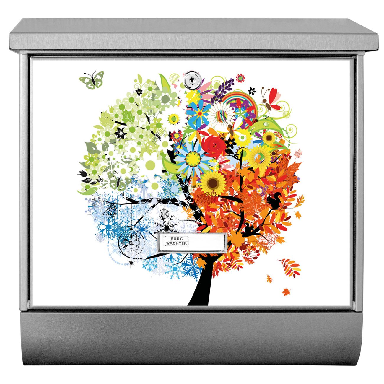 Der Vier Jahreszeiten Motivbriefkasten hat ein sehr ansprechendes und zeitloses Design. Unsere Motivpalette hält jede Menge Varianten bereit, ob klassisch, modern, verspielt oder witzig - für jeden haben wir das passende Motiv parat. Der Briefkasten mit Zeitungsfach ist Ihr Aushängeschild, heben Sie Sich ab ohne auf Funktionalität zu verzichten.