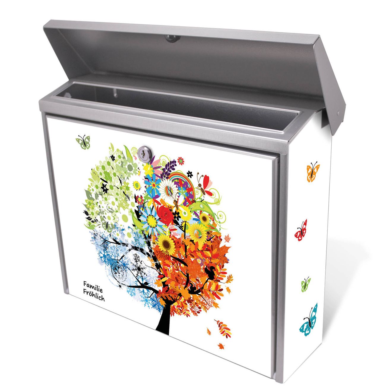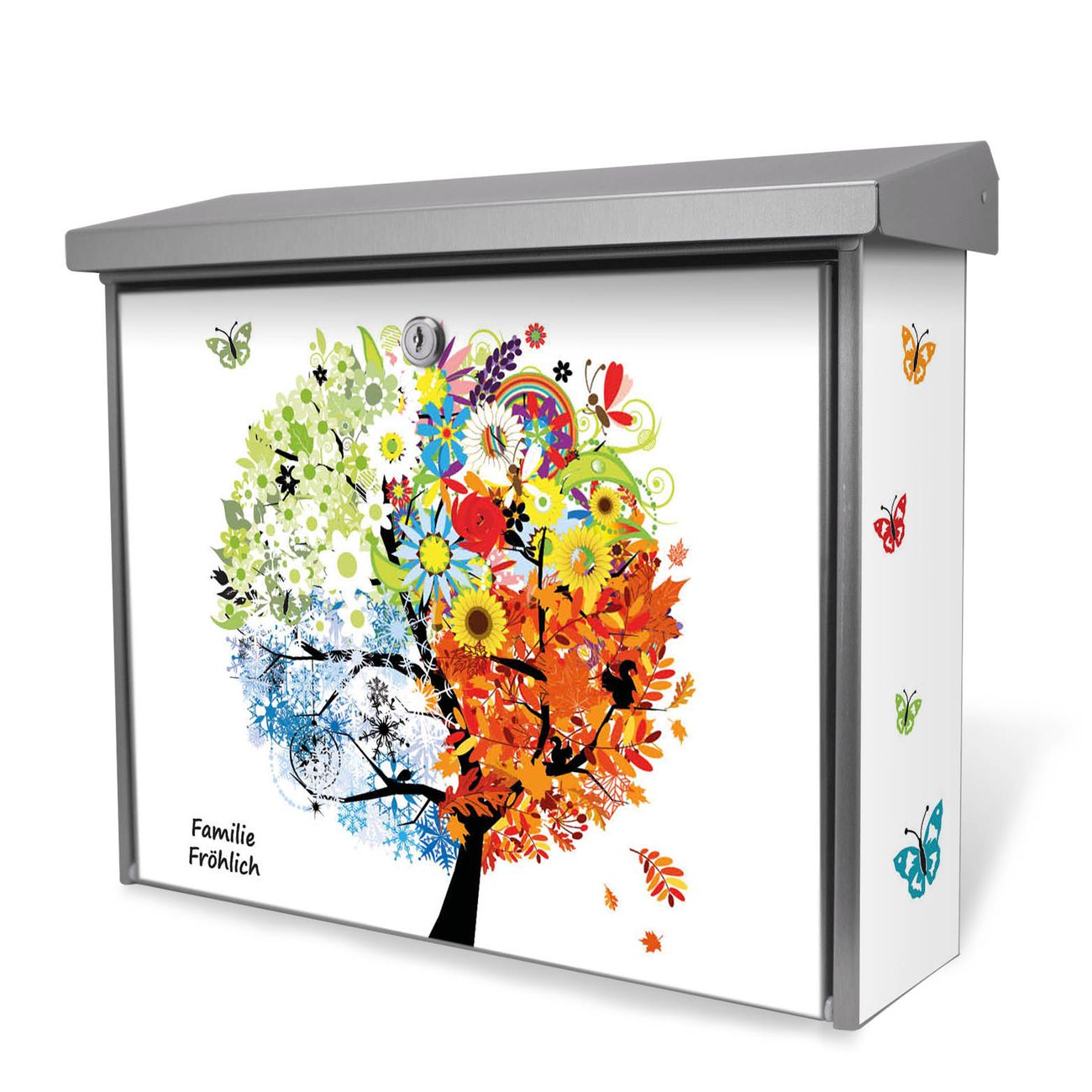Der Postkasten mit Vier Jahreszeiten Motiv hat ein sehr ansprechendes und zeitloses Design. Unsere Motivpalette hält jede Menge Varianten bereit, ob klassisch, modern, verspielt oder witzig - für jeden haben wir das passende Motiv parat. Der Briefkasten ist das Aushängeschild Ihres Hauses.