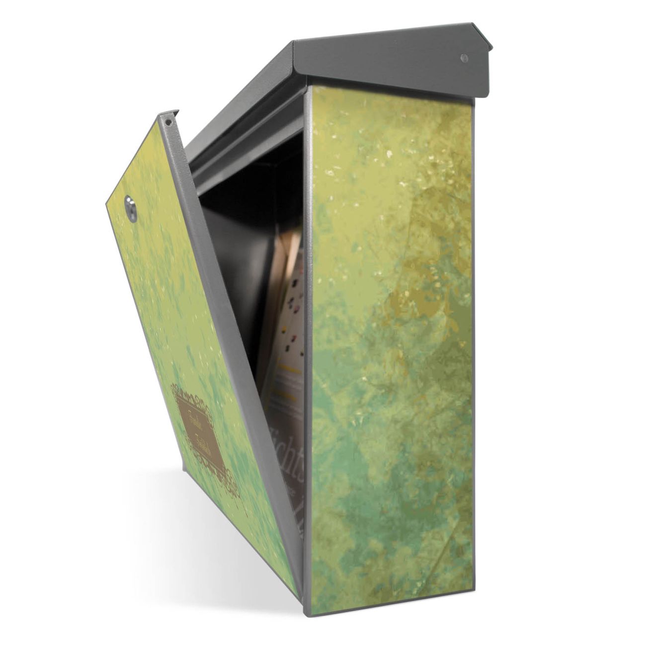 Der Briefkasten besteht aus Edelstahl, einem hochwertigen Material das witterungsbeständig ist. Das Motiv besteht aus einer wetter- und UV-festen Folie, die Ihren Briefkasten zusätzlich vor Kratzern schützt. Der Postkasten ist 31,5cm hoch, 38,5cm breit und 12cm tief. Der Briefeinwurf ist 33,2cm x 2,7cm, Format DIN C4. Der Briefkasten wird mit Montagematerial und zwei Schlüsseln geliefert.