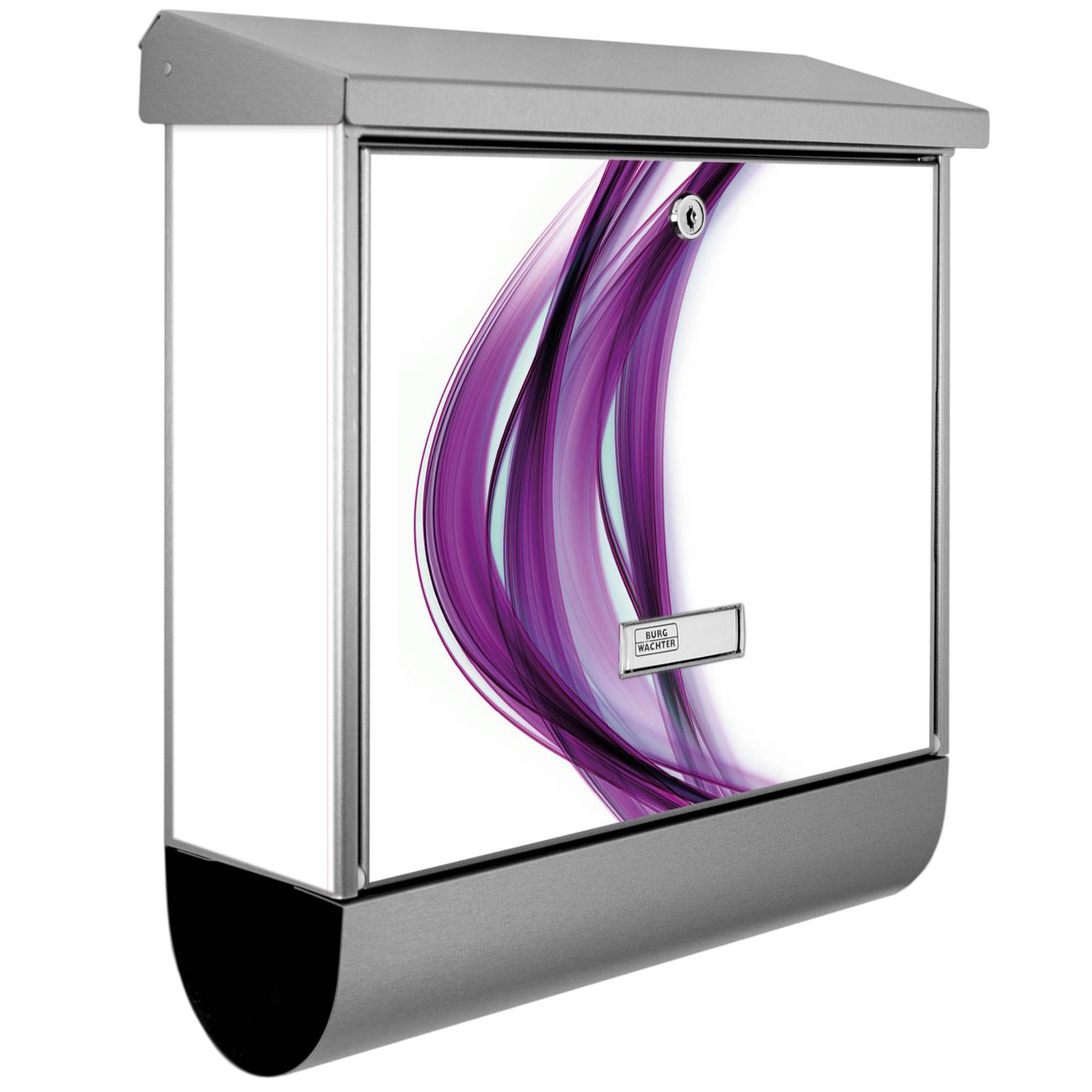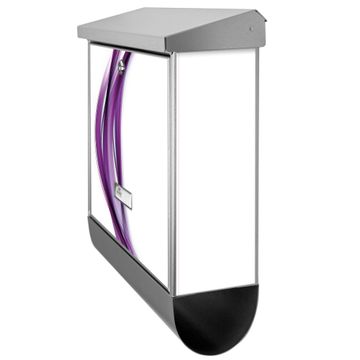 Der BURG-WÄCHTER Edelstahl Briefkasten mit Motiv Violet Element und Zeitungsrolle bietet Ihnen mit seinem Fassungsvermögen genügend Platz auch für große A4 Sendungen und Zeitschriften. Das integrierte Regendach schützt Ihre Post vor dem Eindringen von Regen.