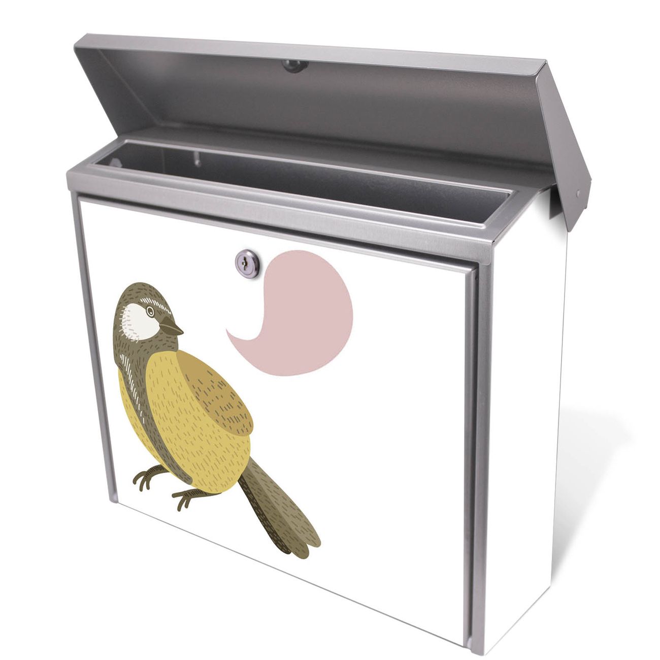 Der Postkasten mit Vogel mit Sprechblase Motiv hat ein sehr ansprechendes und zeitloses Design. Unsere Motivpalette hält jede Menge Varianten bereit, ob klassisch, modern, verspielt oder witzig - für jeden haben wir das passende Motiv parat. Der Briefkasten ist das Aushängeschild Ihres Hauses.