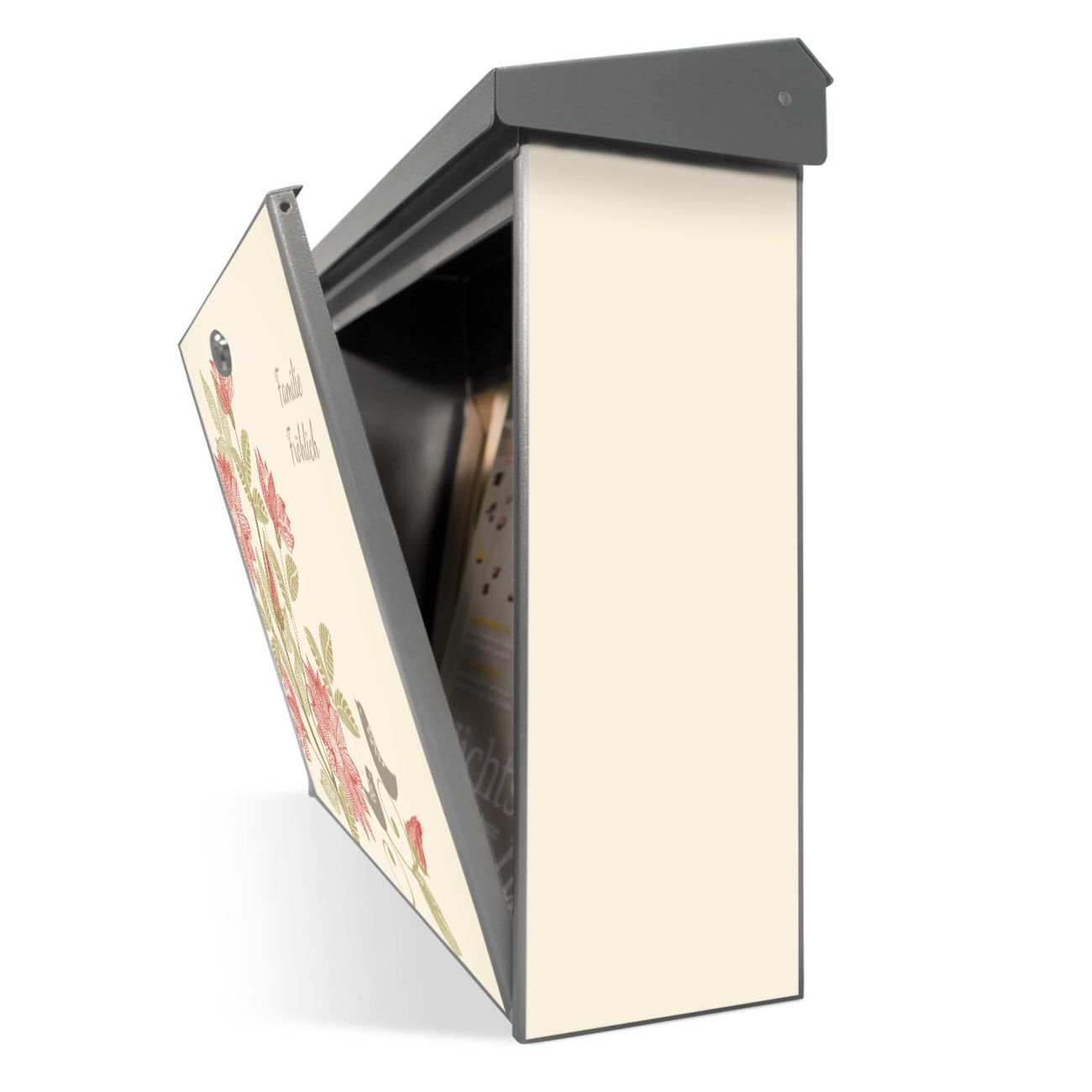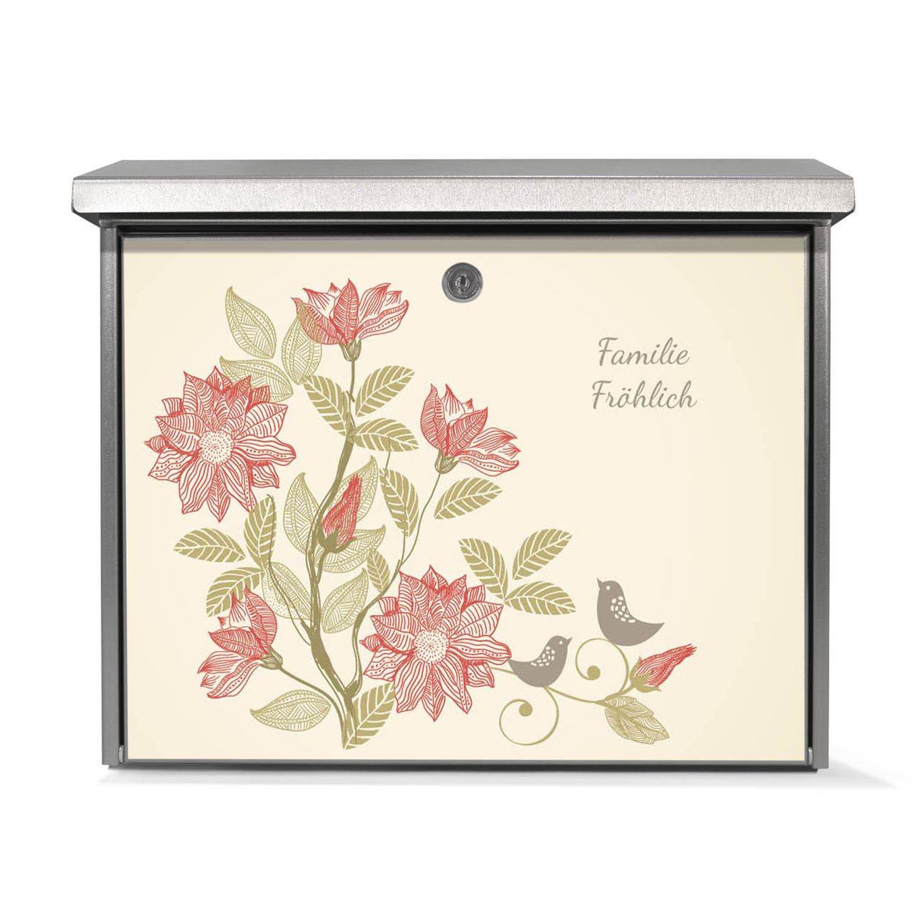 Der Postkasten mit Vogelpaar Motiv hat ein sehr ansprechendes und zeitloses Design. Unsere Motivpalette hält jede Menge Varianten bereit, ob klassisch, modern, verspielt oder witzig - für jeden haben wir das passende Motiv parat. Der Briefkasten ist das Aushängeschild Ihres Hauses.