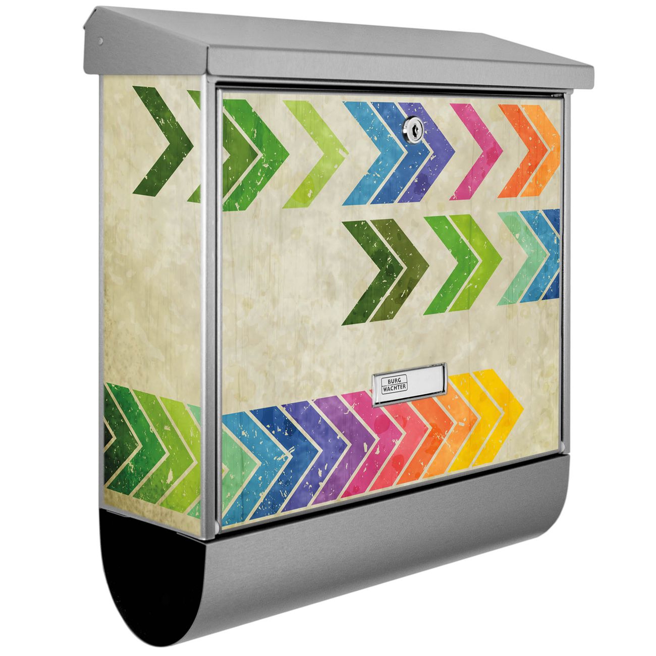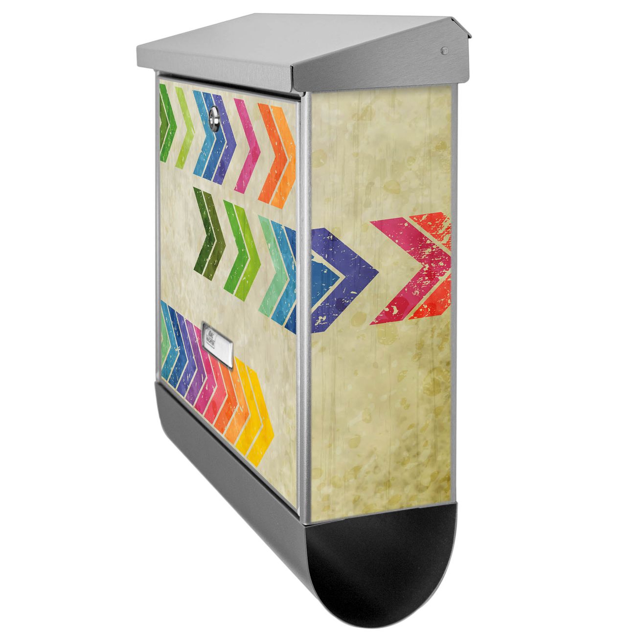 Der Briefkasten besteht aus Edelstahl, einem hochwertigen Material das rostfrei und äußerst unempfindlich gegenüber Witterungseinflüssen ist. Das Motiv besteht aus einer wetter- und UV-festen Folie, die Ihren Briefkasten zusätzlich vor Kratzern schützt. Der Postkasten ist je nach Auswahl 38 x 39 x 12 CM oder 38 x 31,5 x 12 cm (BxHxT) groß. Der Briefeinwurf ist 33,2cm x 3,1cm, Format DIN C4. Der Briefkasten wird mit Montagematerial und zwei Schlüsseln geliefert.