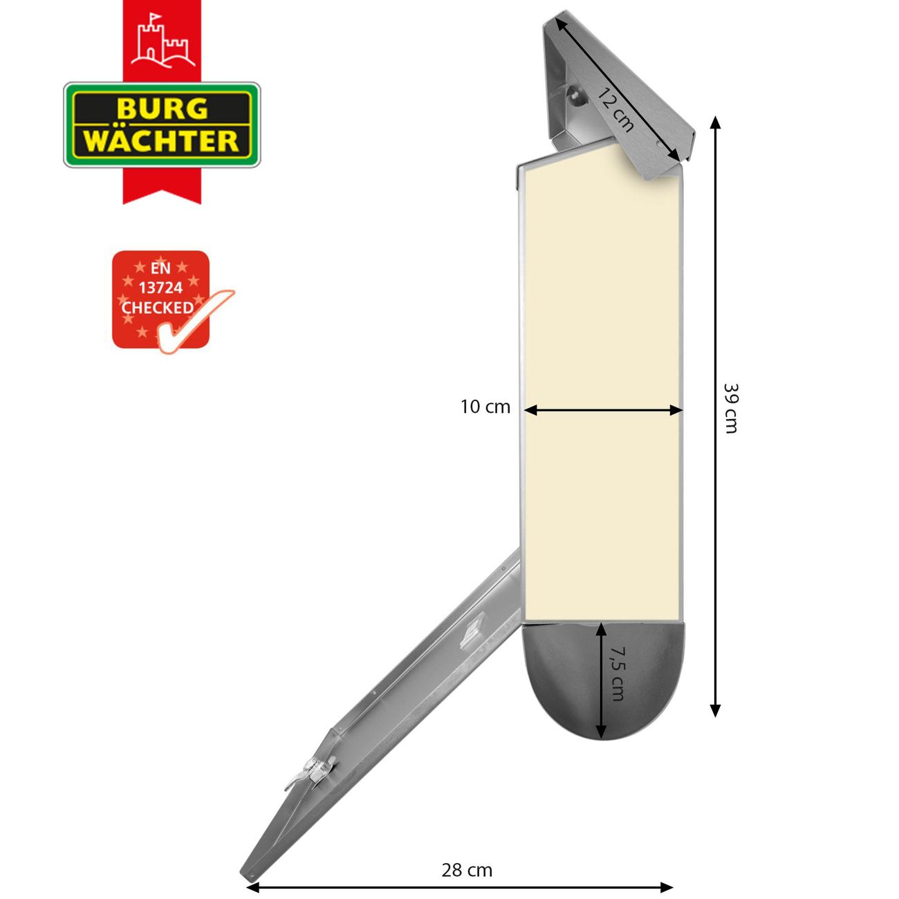 - Briefschlitz: 33,2x2,7cm BxH