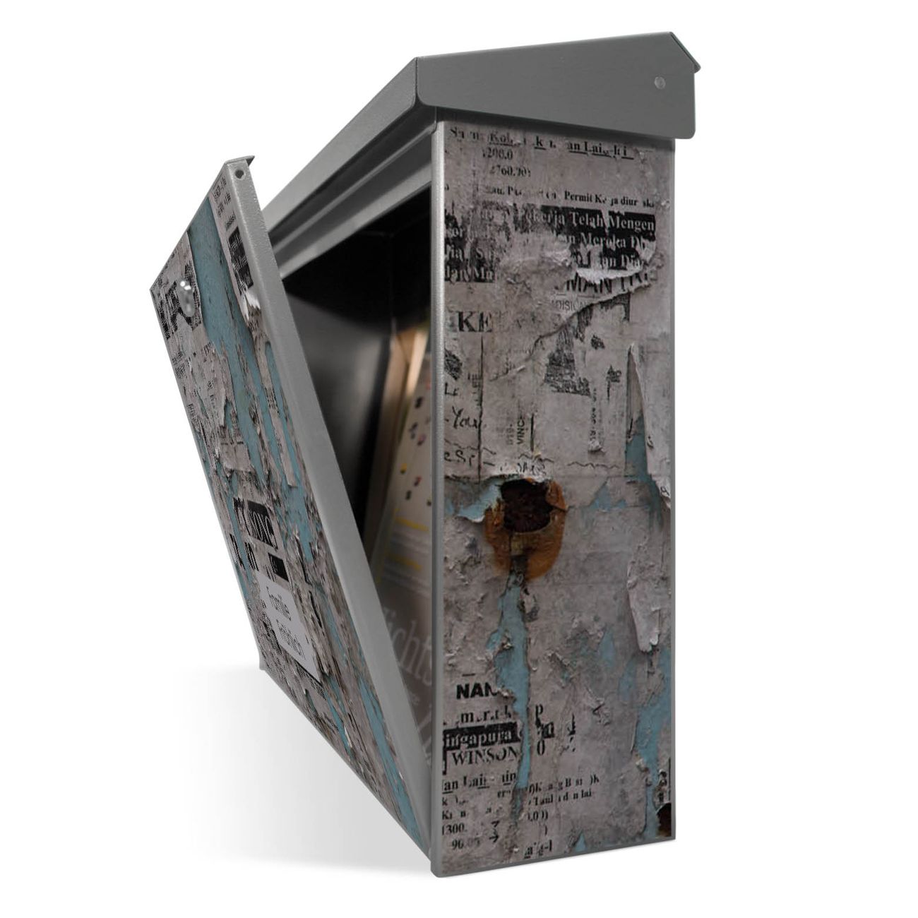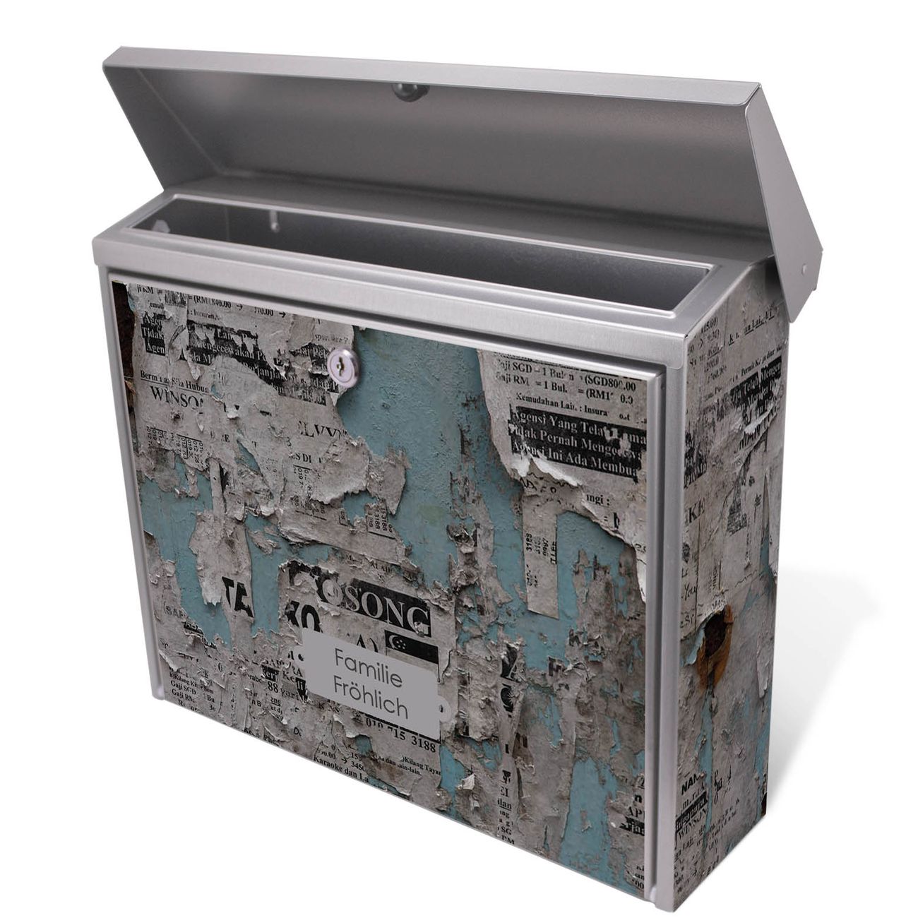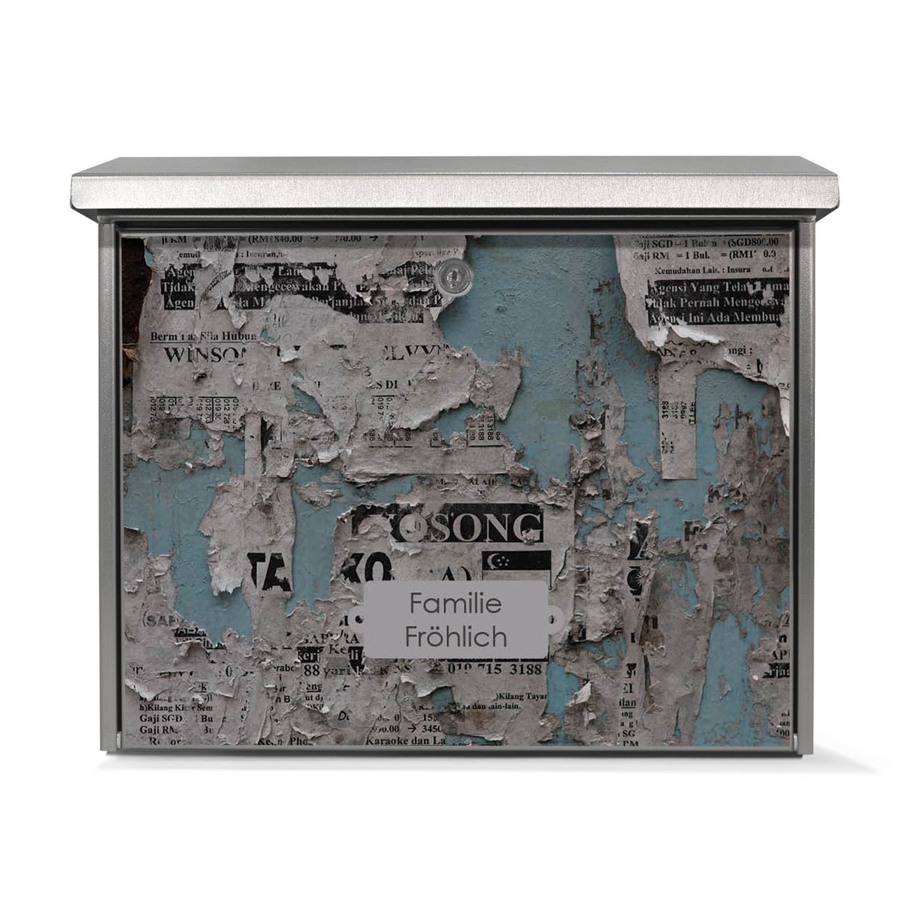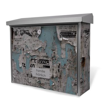 Der Postkasten mit Wand mit Zeitungen Motiv hat ein sehr ansprechendes und zeitloses Design. Unsere Motivpalette hält jede Menge Varianten bereit, ob klassisch, modern, verspielt oder witzig - für jeden haben wir das passende Motiv parat. Der Briefkasten ist das Aushängeschild Ihres Hauses.