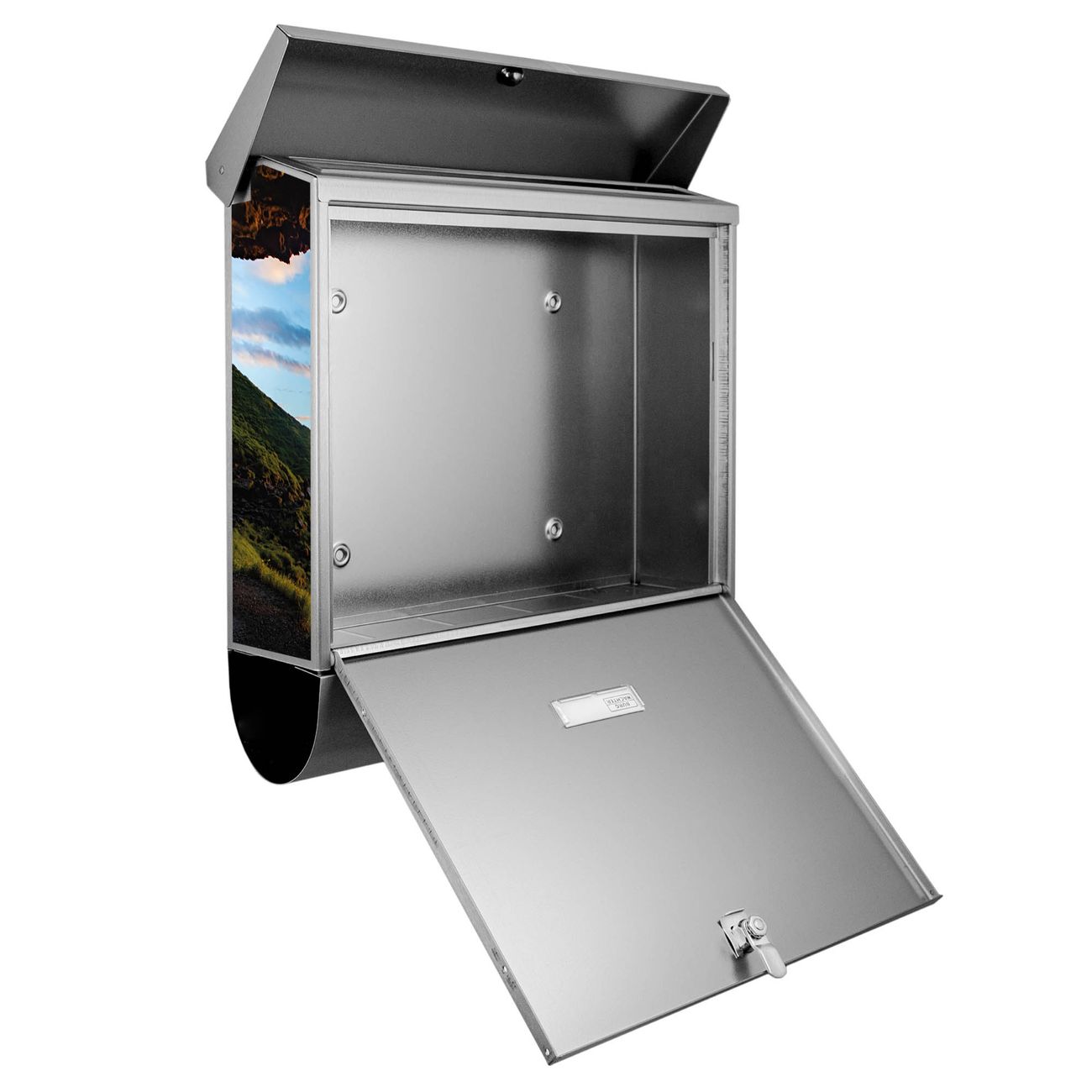 Der Briefkasten besteht aus Edelstahl, einem hochwertigen Material das rostfrei und äußerst unempfindlich gegenüber Witterungseinflüssen ist. Das Motiv besteht aus einer wetter- und UV-festen Folie, die Ihren Briefkasten zusätzlich vor Kratzern schützt. Der Postkasten ist je nach Auswahl 38 x 39 x 12 CM oder 38 x 31,5 x 12 cm (BxHxT) groß. Der Briefeinwurf ist 33,2cm x 3,1cm, Format DIN C4. Der Briefkasten wird mit Montagematerial und zwei Schlüsseln geliefert.