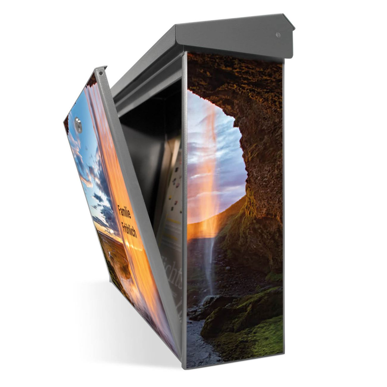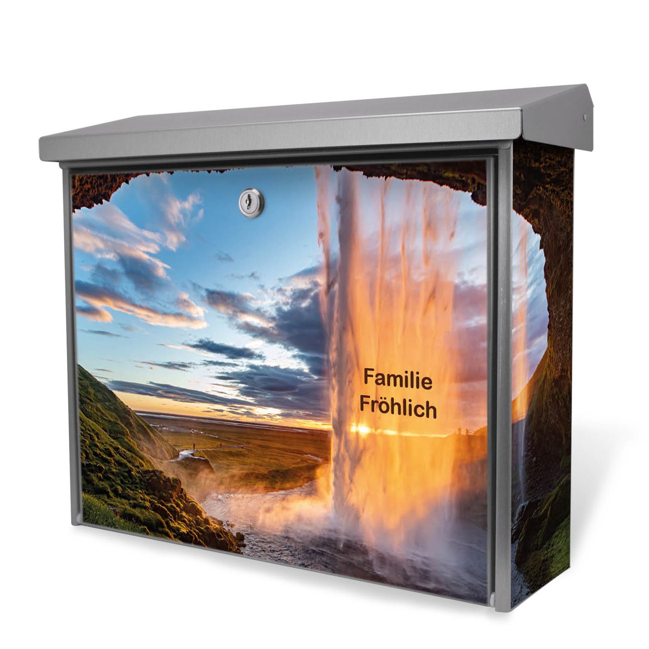Der Postkasten mit Wasserfall im Sonnenlicht Motiv hat ein sehr ansprechendes und zeitloses Design. Unsere Motivpalette hält jede Menge Varianten bereit, ob klassisch, modern, verspielt oder witzig - für jeden haben wir das passende Motiv parat. Der Briefkasten ist das Aushängeschild Ihres Hauses.