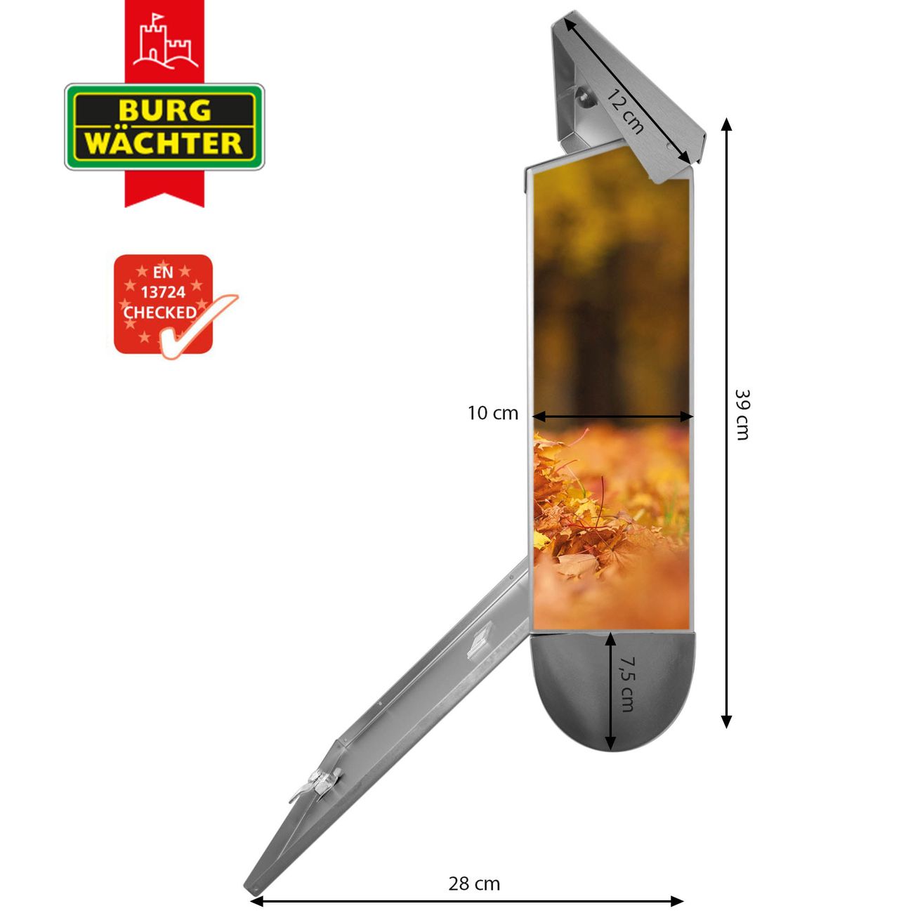 Der BURG-WÄCHTER Edelstahl Briefkasten mit Motiv Wayne und Wanda und Zeitungsrolle bietet Ihnen mit seinem Fassungsvermögen genügend Platz auch für große A4 Sendungen und Zeitschriften. Das integrierte Regendach schützt Ihre Post vor dem Eindringen von Regen.