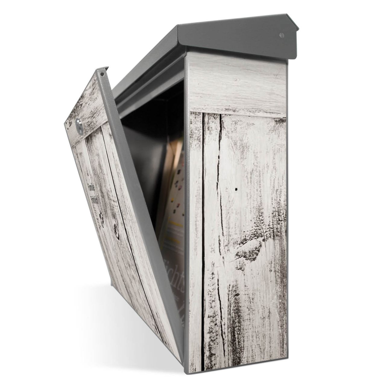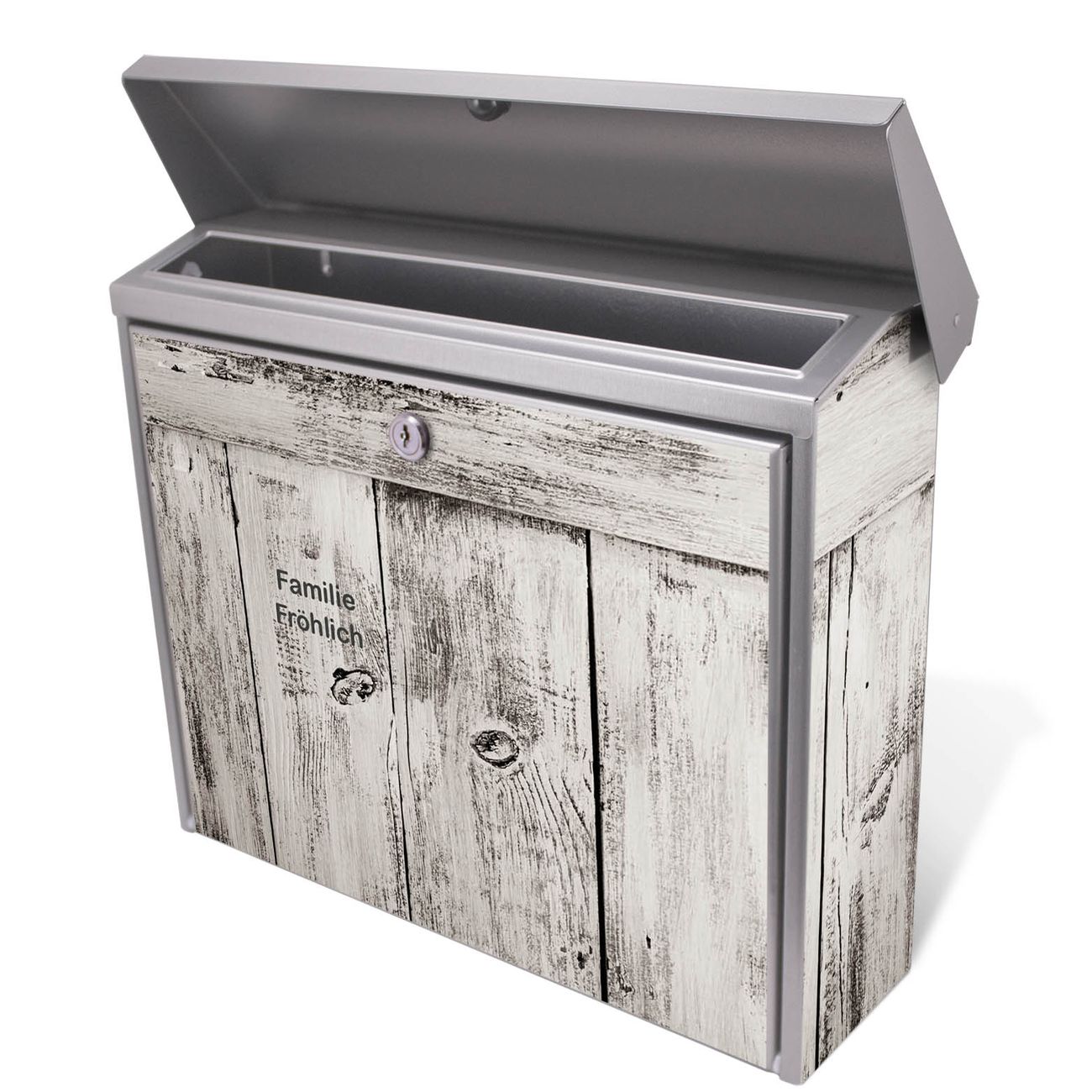 Der Postkasten mit weiße Bretter Motiv hat ein sehr ansprechendes und zeitloses Design. Unsere Motivpalette hält jede Menge Varianten bereit, ob klassisch, modern, verspielt oder witzig - für jeden haben wir das passende Motiv parat. Der Briefkasten ist das Aushängeschild Ihres Hauses.