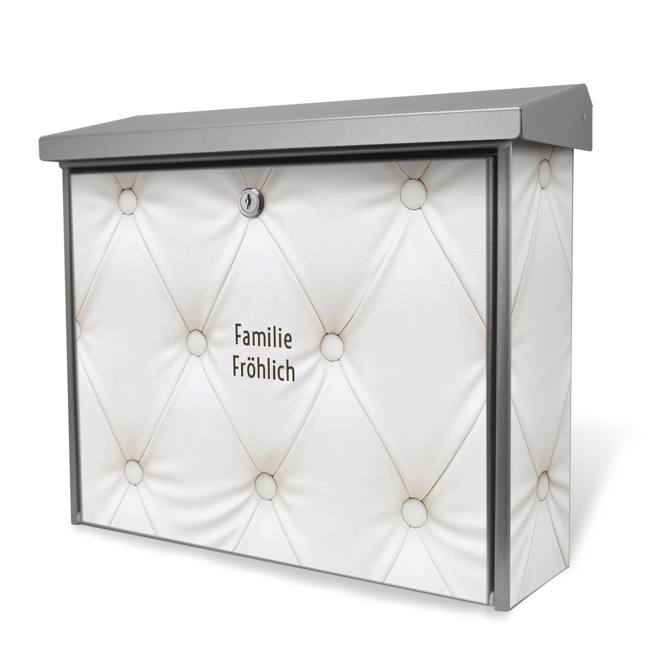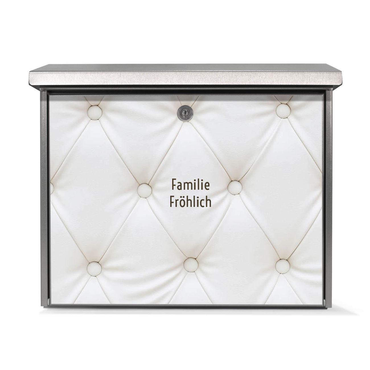 Der Postkasten mit Weißes Polster Motiv hat ein sehr ansprechendes und zeitloses Design. Unsere Motivpalette hält jede Menge Varianten bereit, ob klassisch, modern, verspielt oder witzig - für jeden haben wir das passende Motiv parat. Der Briefkasten ist das Aushängeschild Ihres Hauses.