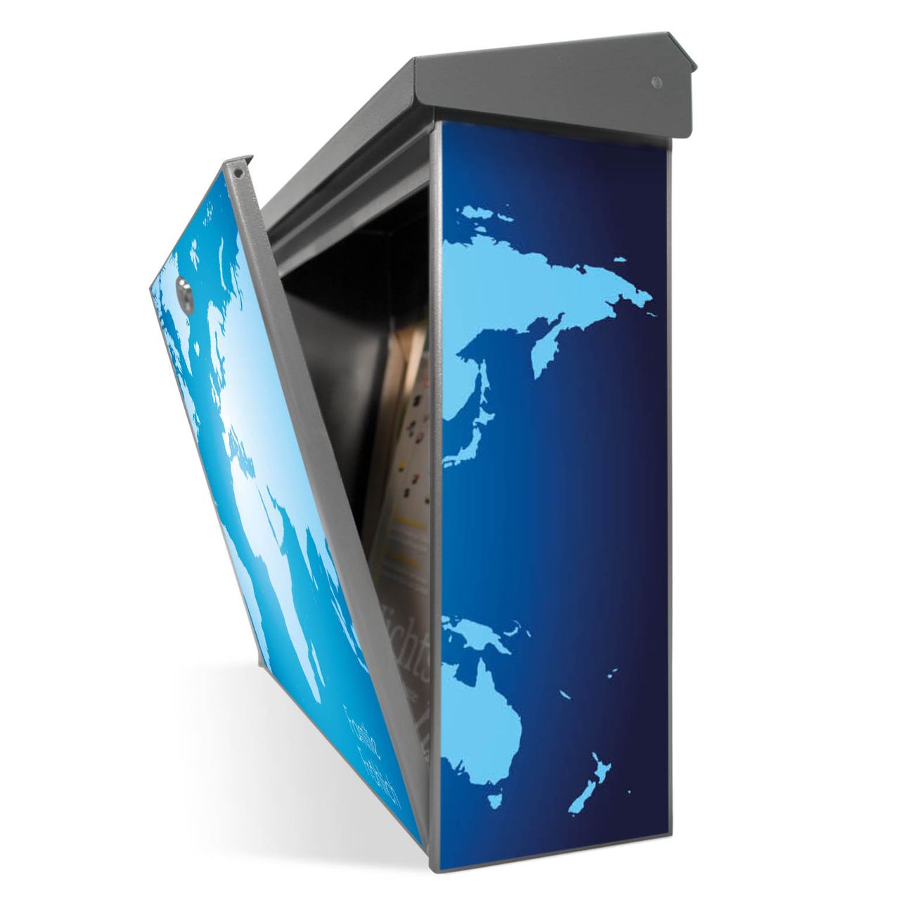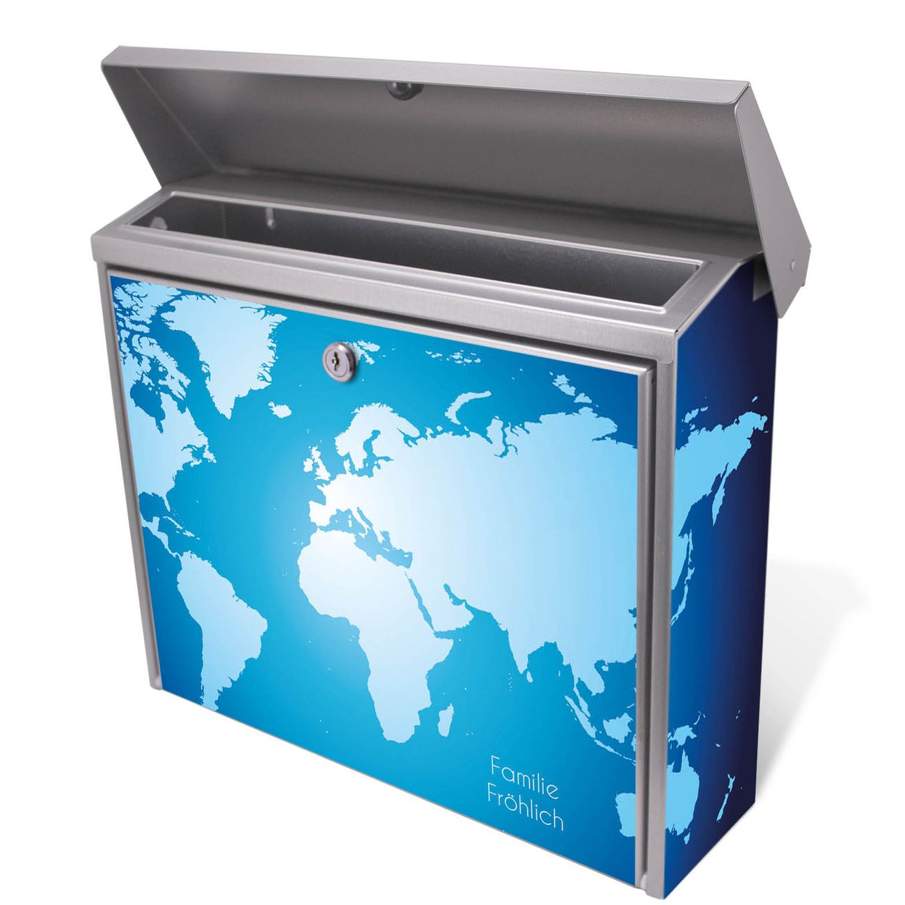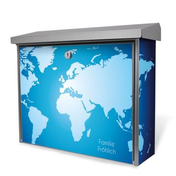 Der Postkasten mit Weltkarte Motiv hat ein sehr ansprechendes und zeitloses Design. Unsere Motivpalette hält jede Menge Varianten bereit, ob klassisch, modern, verspielt oder witzig - für jeden haben wir das passende Motiv parat. Der Briefkasten ist das Aushängeschild Ihres Hauses.