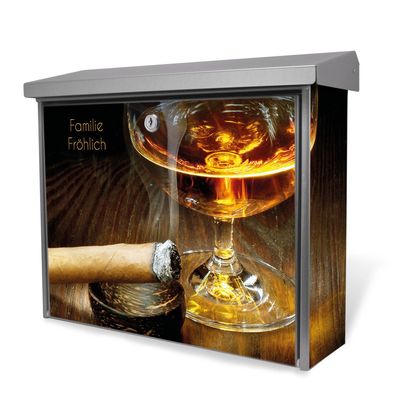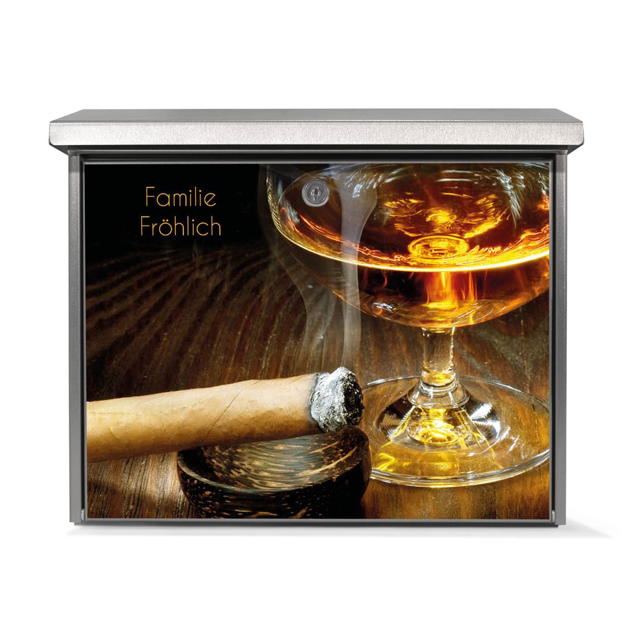 Der Postkasten mit Whiskey & Cigar Motiv hat ein sehr ansprechendes und zeitloses Design. Unsere Motivpalette hält jede Menge Varianten bereit, ob klassisch, modern, verspielt oder witzig - für jeden haben wir das passende Motiv parat. Der Briefkasten ist das Aushängeschild Ihres Hauses.