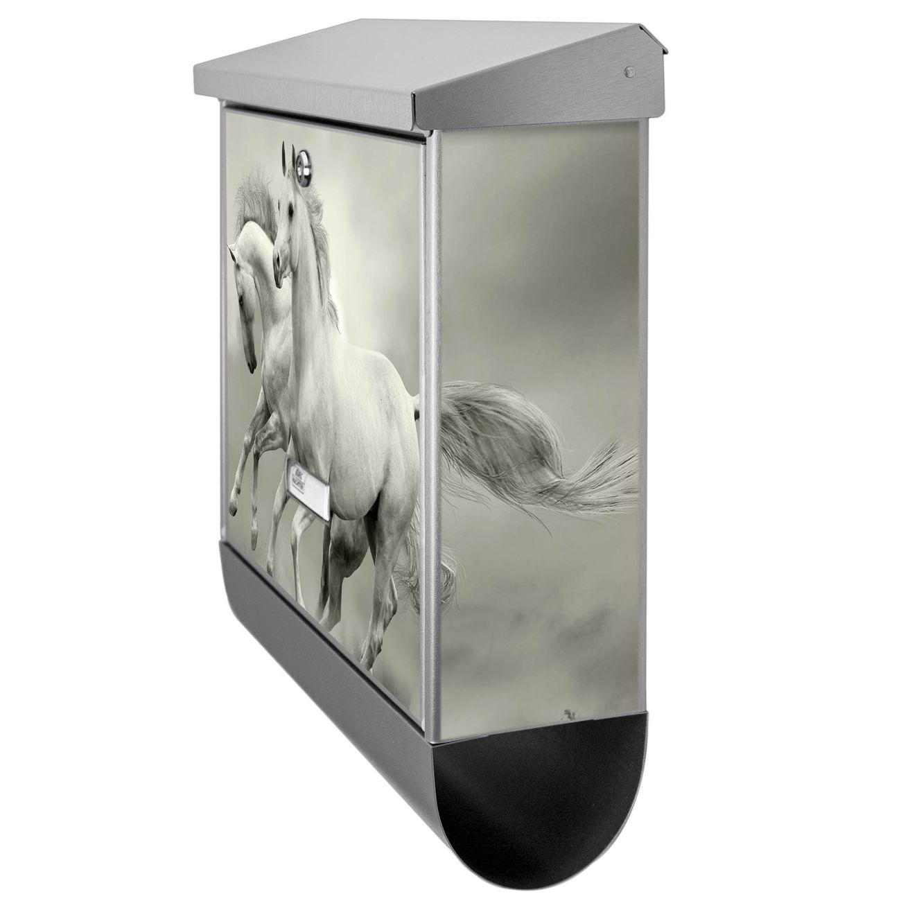 Der Wilde Pferde SW Motivbriefkasten hat ein sehr ansprechendes und zeitloses Design. Unsere Motivpalette hält jede Menge Varianten bereit, ob klassisch, modern, verspielt oder witzig - für jeden haben wir das passende Motiv parat. Der Briefkasten mit Zeitungsfach ist Ihr Aushängeschild, heben Sie Sich ab ohne auf Funktionalität zu verzichten.