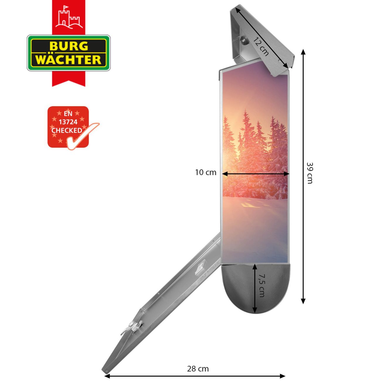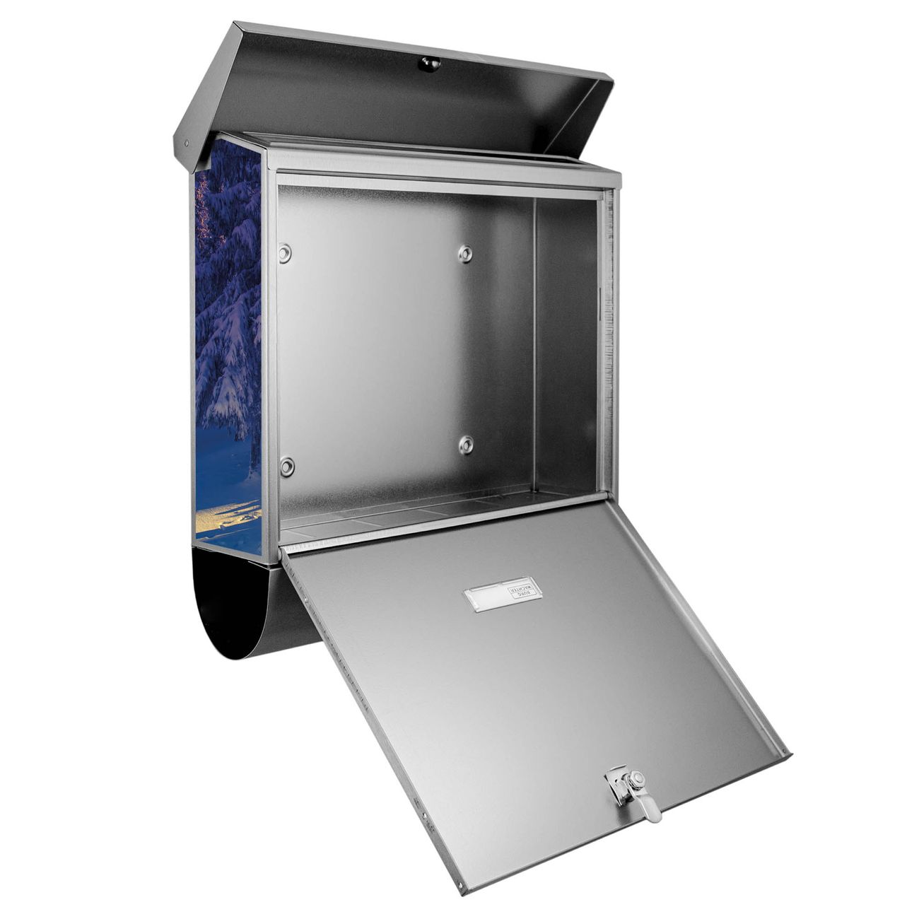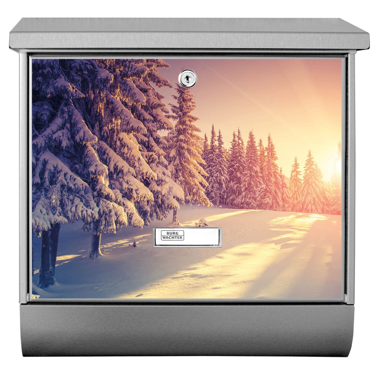 Der BURG-WÄCHTER Edelstahl Briefkasten mit Motiv Winterabend und Zeitungsrolle bietet Ihnen mit seinem Fassungsvermögen genügend Platz auch für große A4 Sendungen und Zeitschriften. Das integrierte Regendach schützt Ihre Post vor dem Eindringen von Regen.