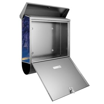 Der Briefkasten besteht aus Edelstahl, einem hochwertigen Material das rostfrei und äußerst unempfindlich gegenüber Witterungseinflüssen ist. Das Motiv besteht aus einer wetter- und UV-festen Folie, die Ihren Briefkasten zusätzlich vor Kratzern schützt. Der Postkasten ist je nach Auswahl 38 x 39 x 12 CM oder 38 x 31,5 x 12 cm (BxHxT) groß. Der Briefeinwurf ist 33,2cm x 3,1cm, Format DIN C4. Der Briefkasten wird mit Montagematerial und zwei Schlüsseln geliefert.