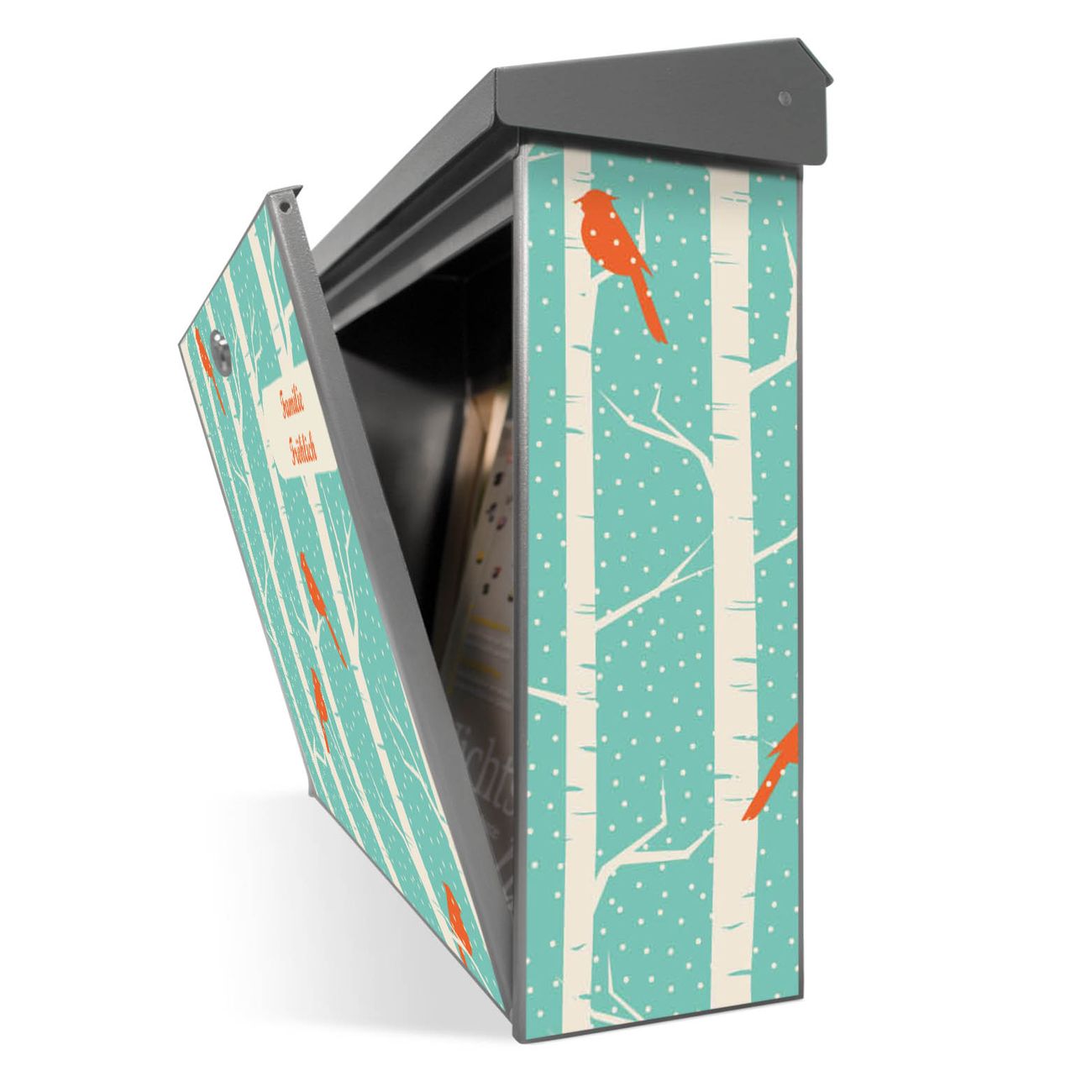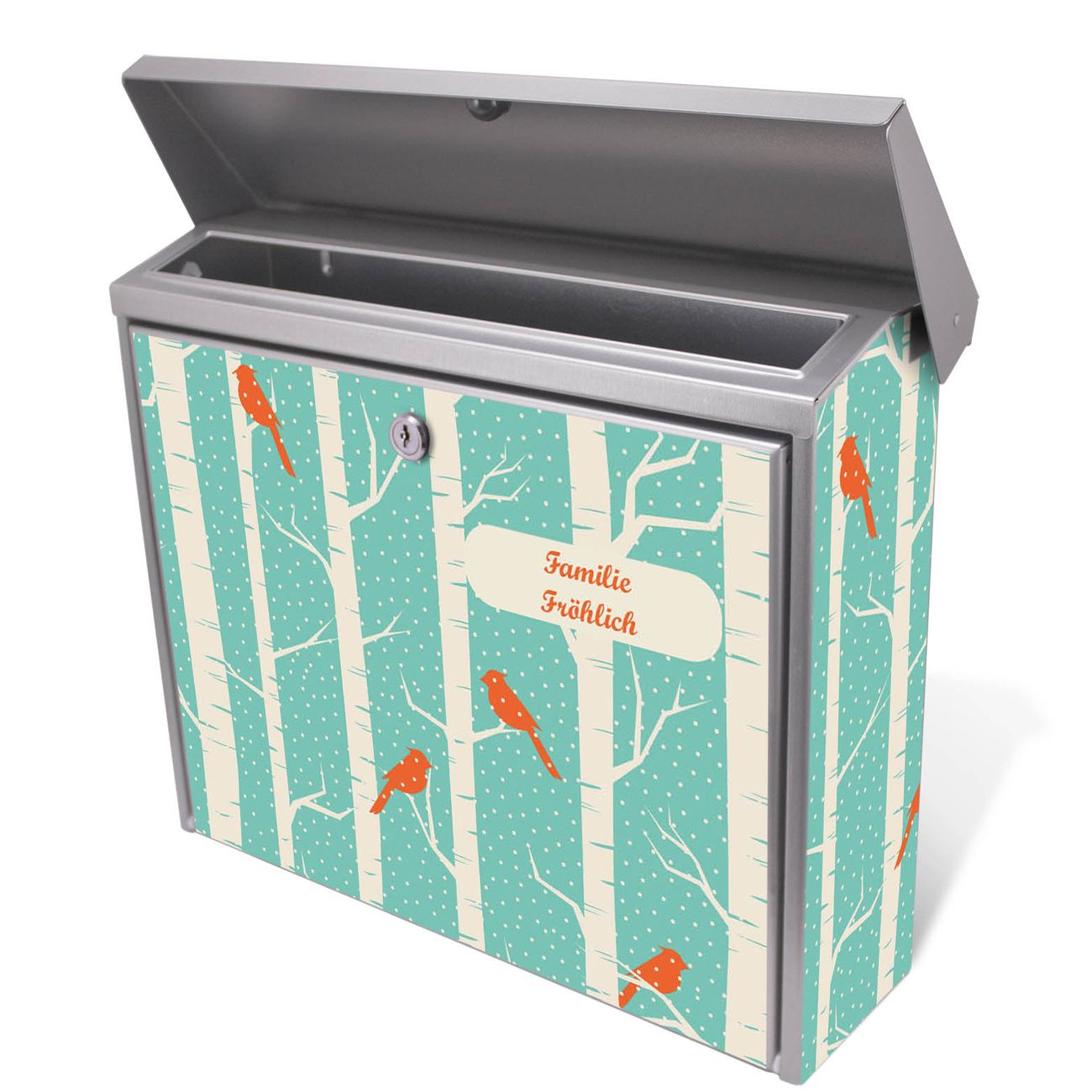 Der Postkasten mit Wintervögel Motiv hat ein sehr ansprechendes und zeitloses Design. Unsere Motivpalette hält jede Menge Varianten bereit, ob klassisch, modern, verspielt oder witzig - für jeden haben wir das passende Motiv parat. Der Briefkasten ist das Aushängeschild Ihres Hauses.