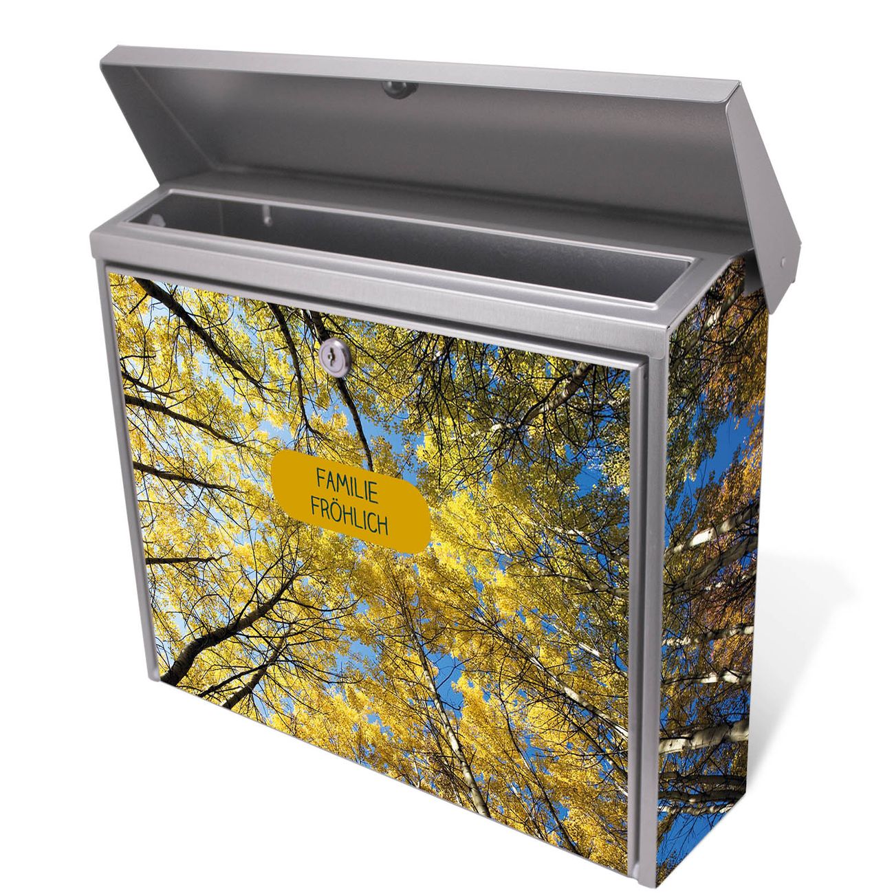 Sie können diesen Briefkasten sowohl als Wandbriefkasten montieren oder mit dem passenden Ständer als Standbriefkasten einbetonieren. Die gestaltete Motivfolie ist absolut wetterfest, UV-beständig und ein zusätzliches Schutzlaminat bewahrt Ihren Briefkasten vor unnötigen Kratzern.