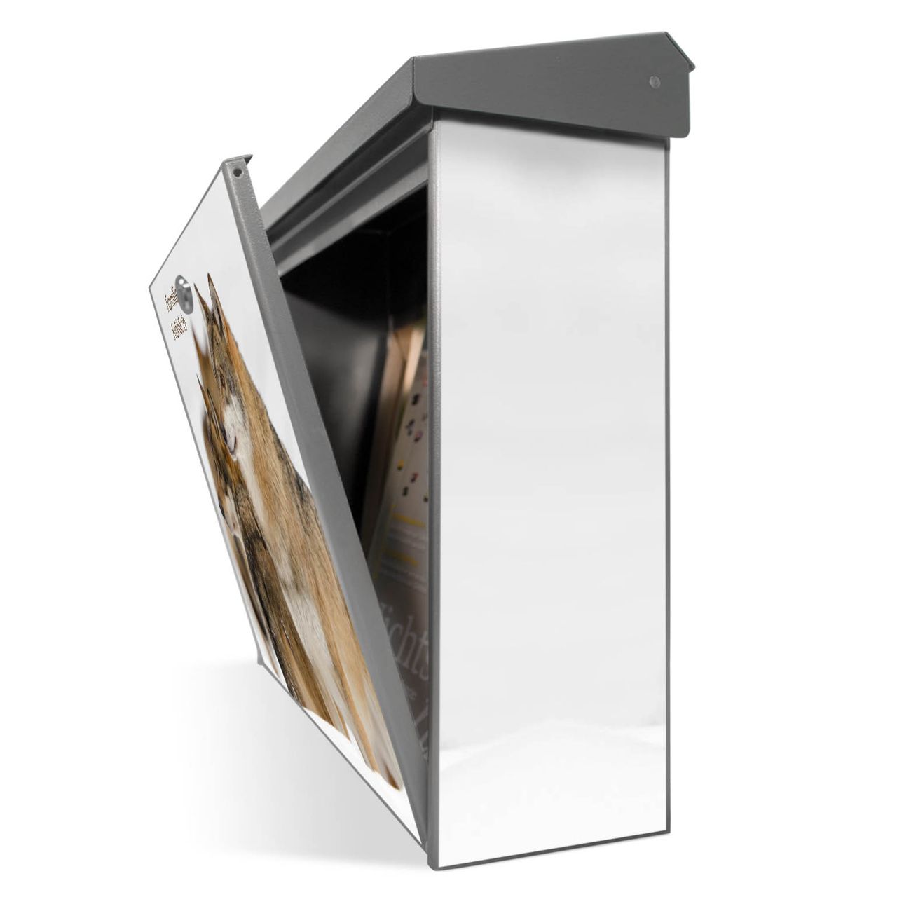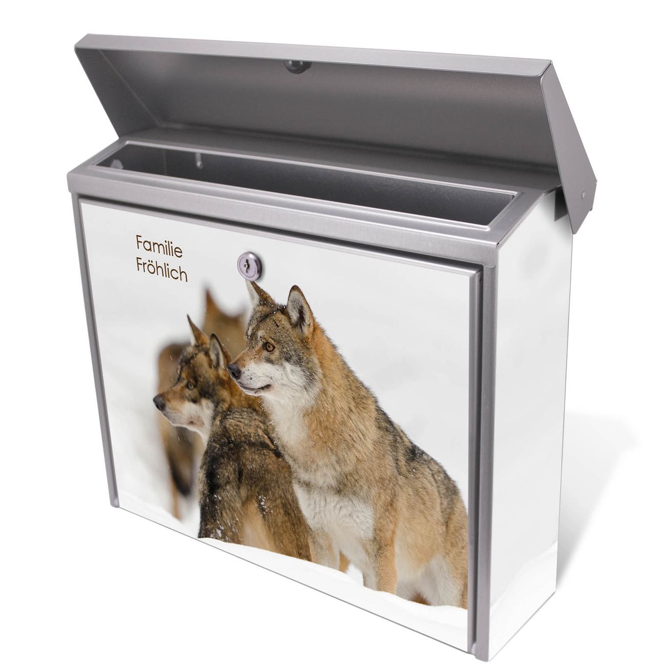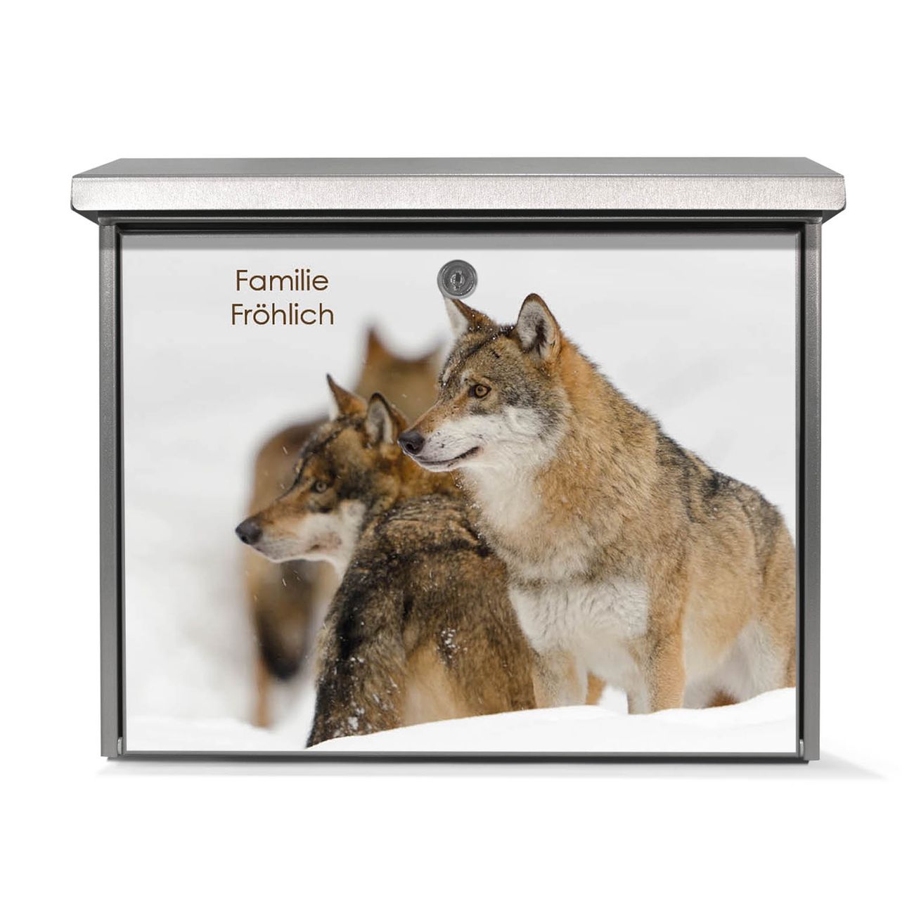 Der Postkasten mit Wölfe Motiv hat ein sehr ansprechendes und zeitloses Design. Unsere Motivpalette hält jede Menge Varianten bereit, ob klassisch, modern, verspielt oder witzig - für jeden haben wir das passende Motiv parat. Der Briefkasten ist das Aushängeschild Ihres Hauses.