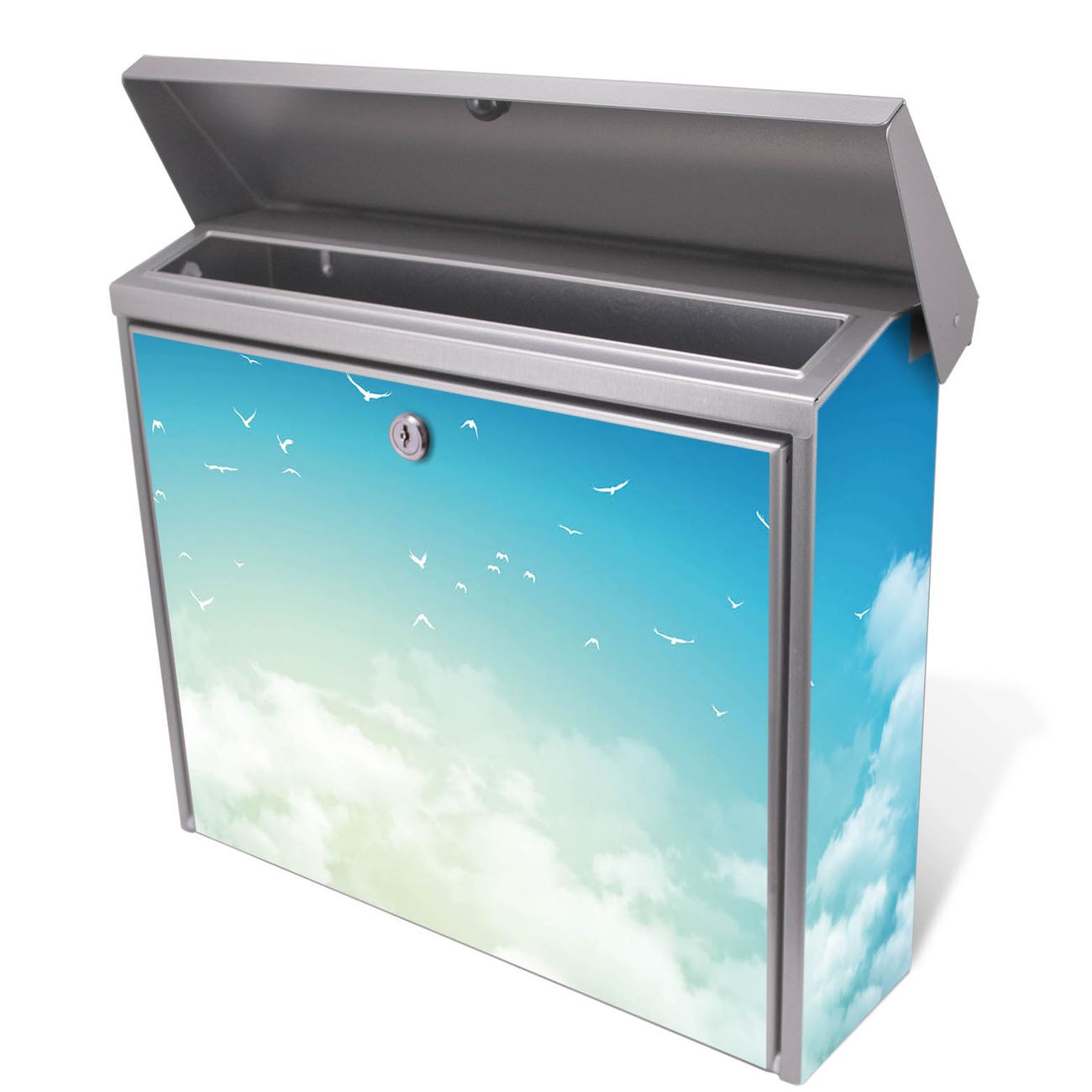 Der Postkasten mit Wolken 8 Motiv hat ein sehr ansprechendes und zeitloses Design. Unsere Motivpalette hält jede Menge Varianten bereit, ob klassisch, modern, verspielt oder witzig - für jeden haben wir das passende Motiv parat. Der Briefkasten ist das Aushängeschild Ihres Hauses.