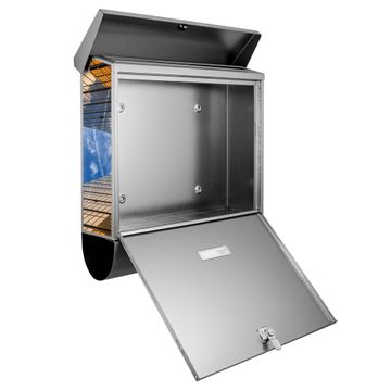 Der Briefkasten besteht aus Edelstahl, einem hochwertigen Material das rostfrei und äußerst unempfindlich gegenüber Witterungseinflüssen ist. Das Motiv besteht aus einer wetter- und UV-festen Folie, die Ihren Briefkasten zusätzlich vor Kratzern schützt. Der Postkasten ist je nach Auswahl 38 x 39 x 12 CM oder 38 x 31,5 x 12 cm (BxHxT) groß. Der Briefeinwurf ist 33,2cm x 3,1cm, Format DIN C4. Der Briefkasten wird mit Montagematerial und zwei Schlüsseln geliefert.