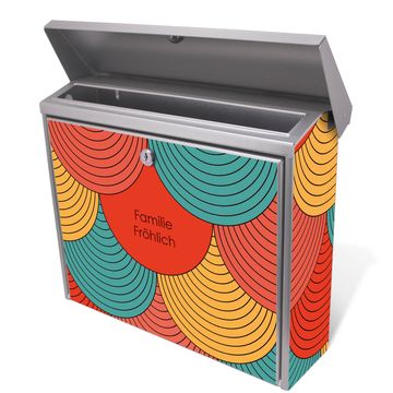 Der Briefkasten besteht aus Edelstahl, einem hochwertigen Material das witterungsbeständig ist. Das Motiv besteht aus einer wetter- und UV-festen Folie, die Ihren Briefkasten zusätzlich vor Kratzern schützt. Der Postkasten ist 31,5cm hoch, 38,5cm breit und 12cm tief. Der Briefeinwurf ist 33,2cm x 2,7cm, Format DIN C4. Der Briefkasten wird mit Montagematerial und zwei Schlüsseln geliefert.