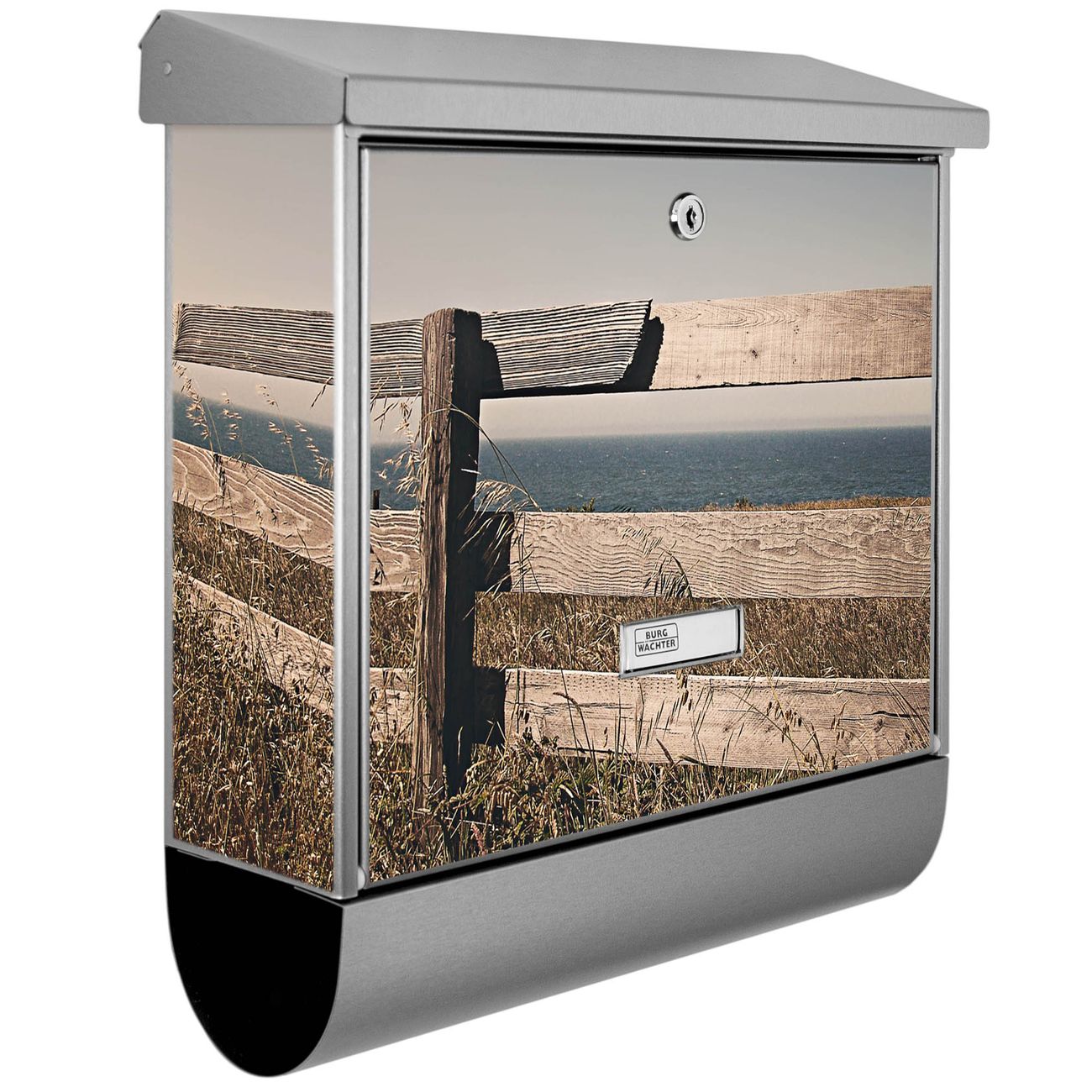 Der Zaun am Meer Motivbriefkasten hat ein sehr ansprechendes und zeitloses Design. Unsere Motivpalette hält jede Menge Varianten bereit, ob klassisch, modern, verspielt oder witzig - für jeden haben wir das passende Motiv parat. Der Briefkasten mit Zeitungsfach ist Ihr Aushängeschild, heben Sie Sich ab ohne auf Funktionalität zu verzichten.