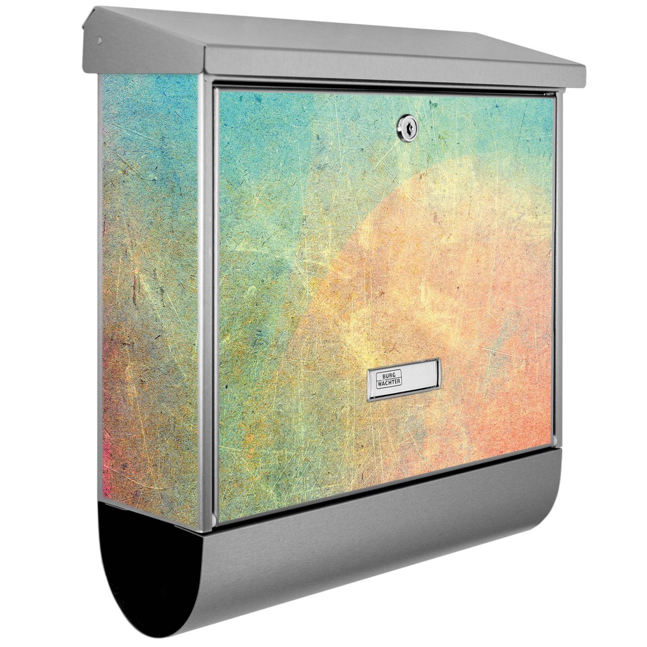 Der Briefkasten besteht aus Edelstahl, einem hochwertigen Material das rostfrei und äußerst unempfindlich gegenüber Witterungseinflüssen ist. Das Motiv besteht aus einer wetter- und UV-festen Folie, die Ihren Briefkasten zusätzlich vor Kratzern schützt. Der Postkasten ist je nach Auswahl 38 x 39 x 12 CM oder 38 x 31,5 x 12 cm (BxHxT) groß. Der Briefeinwurf ist 33,2cm x 3,1cm, Format DIN C4. Der Briefkasten wird mit Montagematerial und zwei Schlüsseln geliefert.