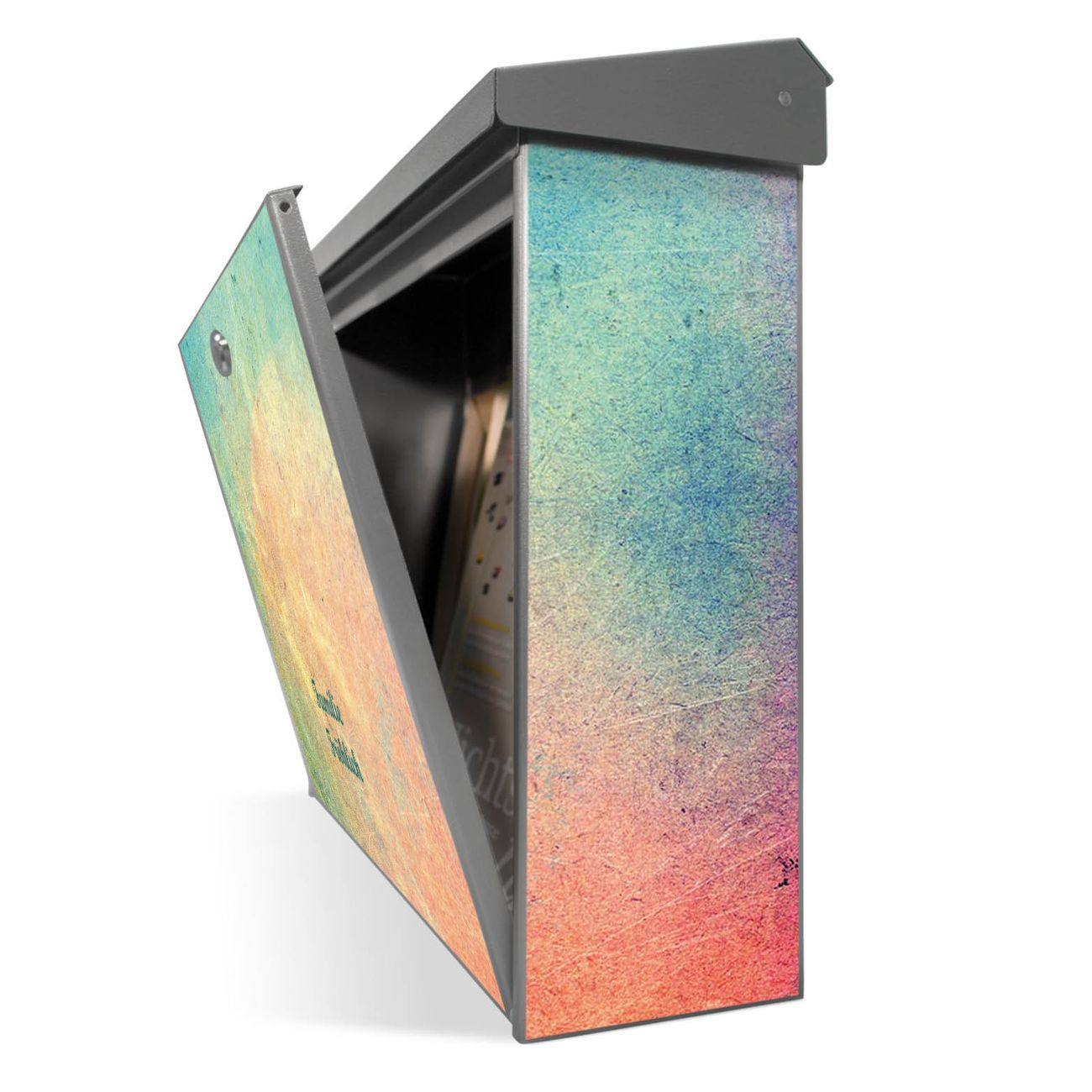 Sie können diesen Briefkasten sowohl als Wandbriefkasten montieren oder mit dem passenden Ständer als Standbriefkasten einbetonieren. Die gestaltete Motivfolie ist absolut wetterfest, UV-beständig und ein zusätzliches Schutzlaminat bewahrt Ihren Briefkasten vor unnötigen Kratzern.