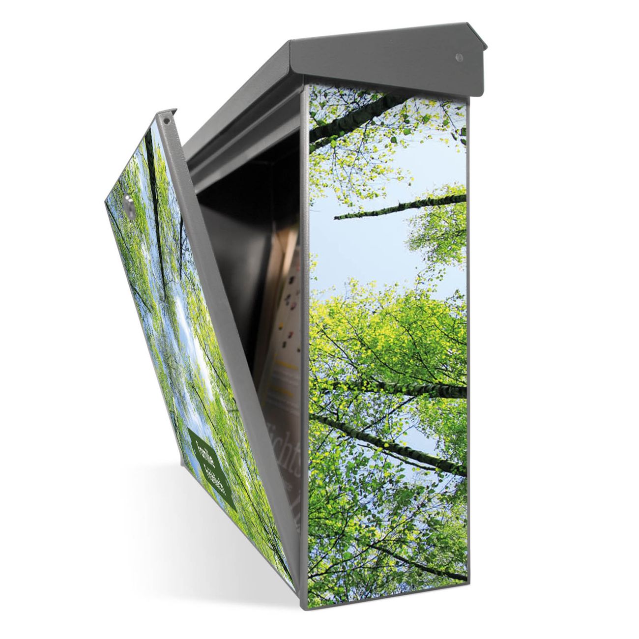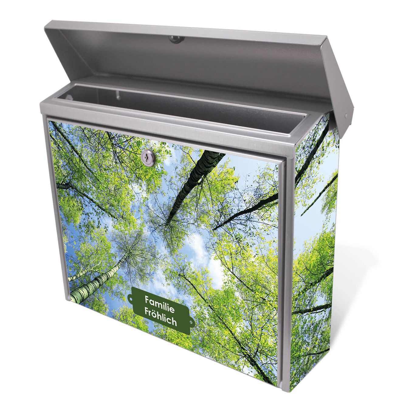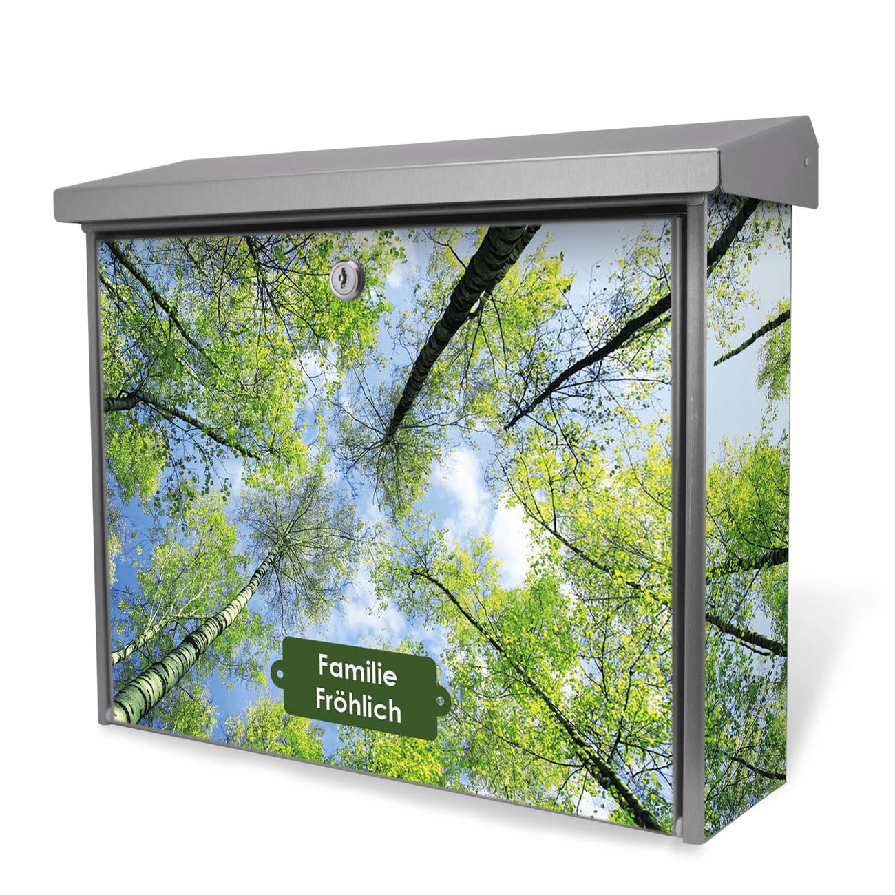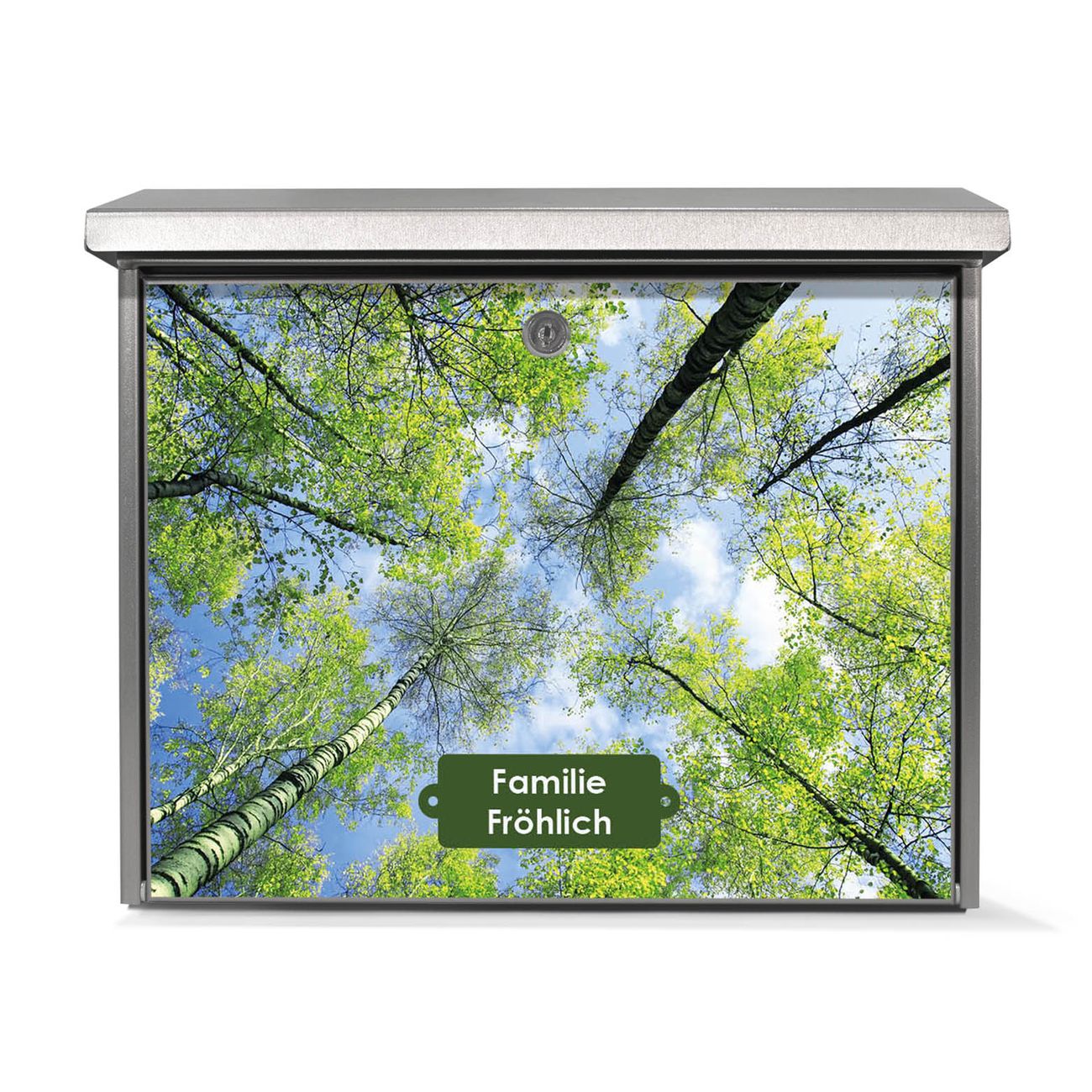 Der Postkasten mit Zwischen Bäumen 3 Motiv hat ein sehr ansprechendes und zeitloses Design. Unsere Motivpalette hält jede Menge Varianten bereit, ob klassisch, modern, verspielt oder witzig - für jeden haben wir das passende Motiv parat. Der Briefkasten ist das Aushängeschild Ihres Hauses.
