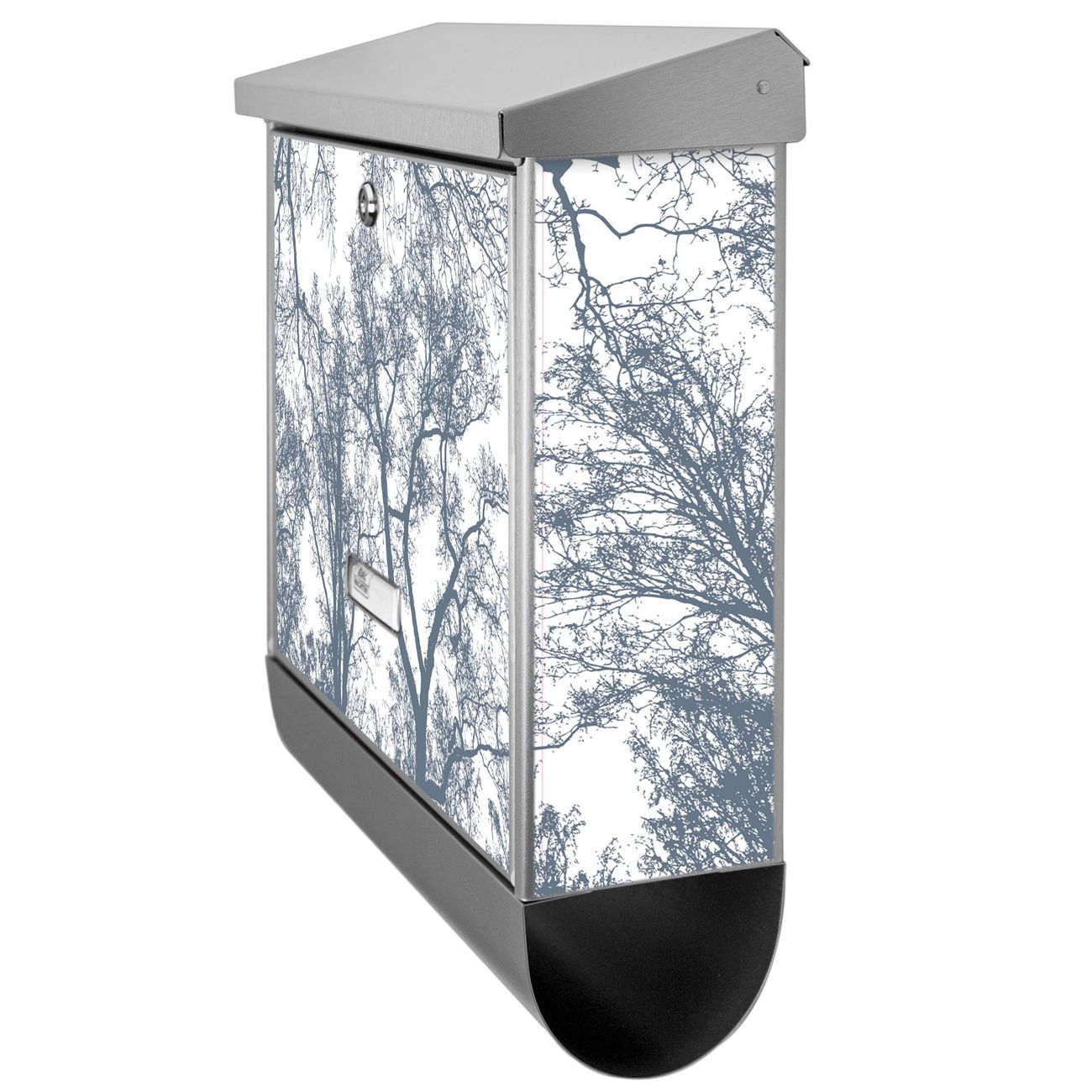 Der BURG-WÄCHTER Edelstahl Briefkasten mit Motiv Zwischen Bäumen 7 und Zeitungsrolle bietet Ihnen mit seinem Fassungsvermögen genügend Platz auch für große A4 Sendungen und Zeitschriften. Das integrierte Regendach schützt Ihre Post vor dem Eindringen von Regen.