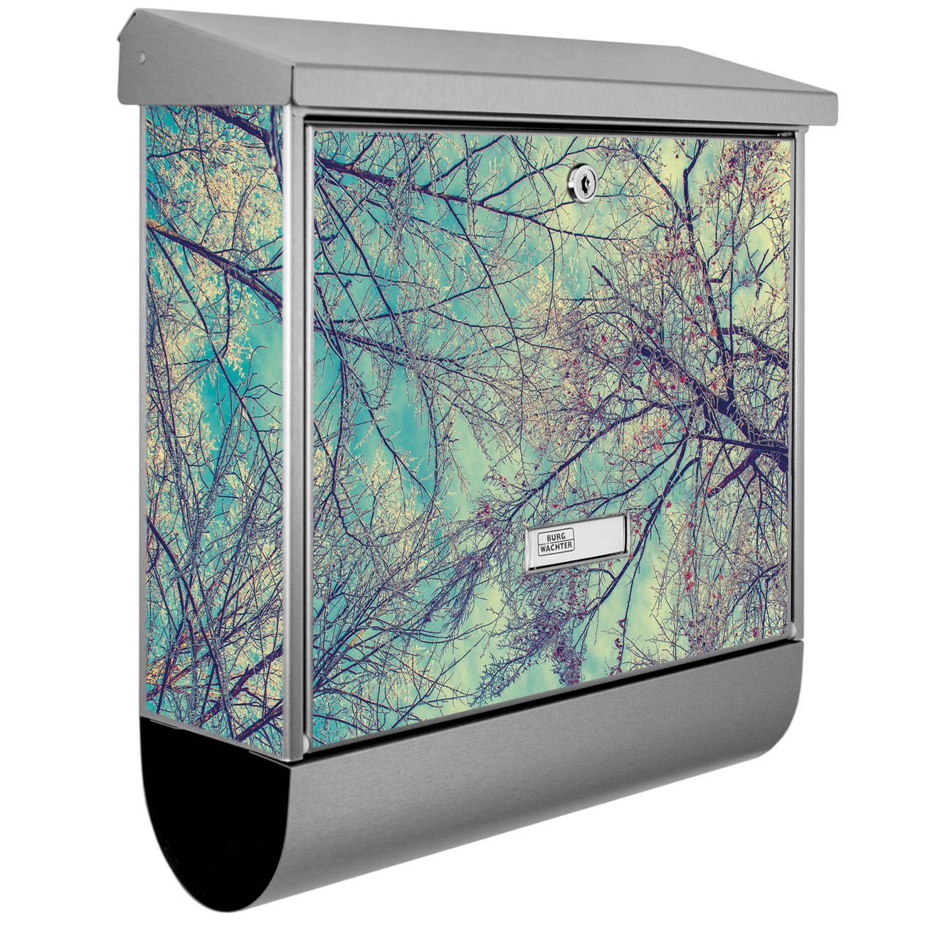 Der BURG-WÄCHTER Edelstahl Briefkasten mit Motiv Zwischen Bäumen 8 und Zeitungsrolle bietet Ihnen mit seinem Fassungsvermögen genügend Platz auch für große A4 Sendungen und Zeitschriften. Das integrierte Regendach schützt Ihre Post vor dem Eindringen von Regen.