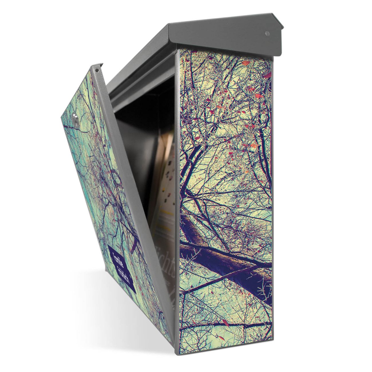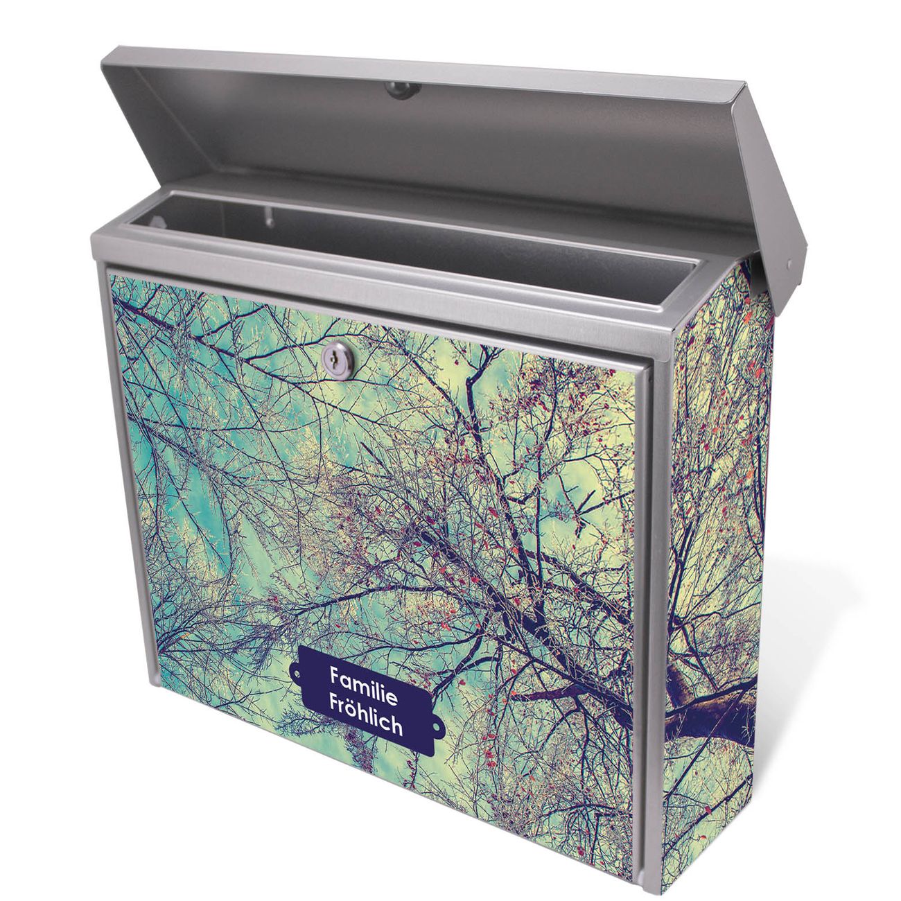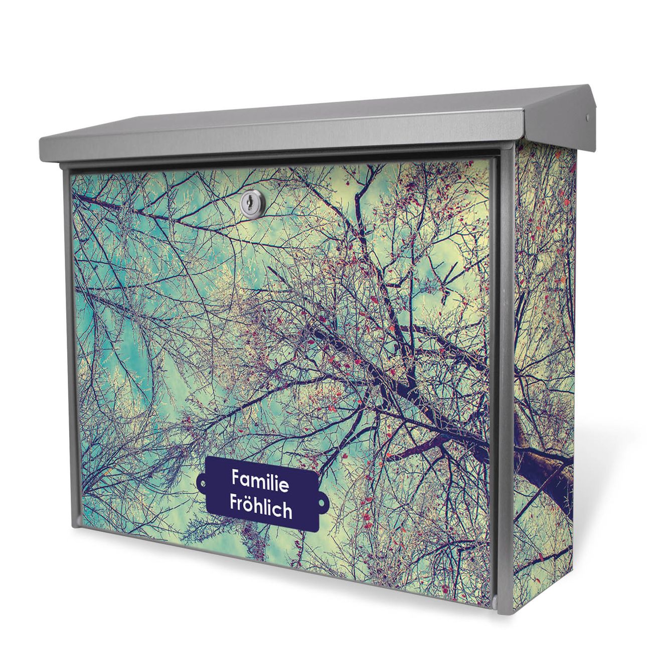 Der Postkasten mit Zwischen Bäumen 8 Motiv hat ein sehr ansprechendes und zeitloses Design. Unsere Motivpalette hält jede Menge Varianten bereit, ob klassisch, modern, verspielt oder witzig - für jeden haben wir das passende Motiv parat. Der Briefkasten ist das Aushängeschild Ihres Hauses.