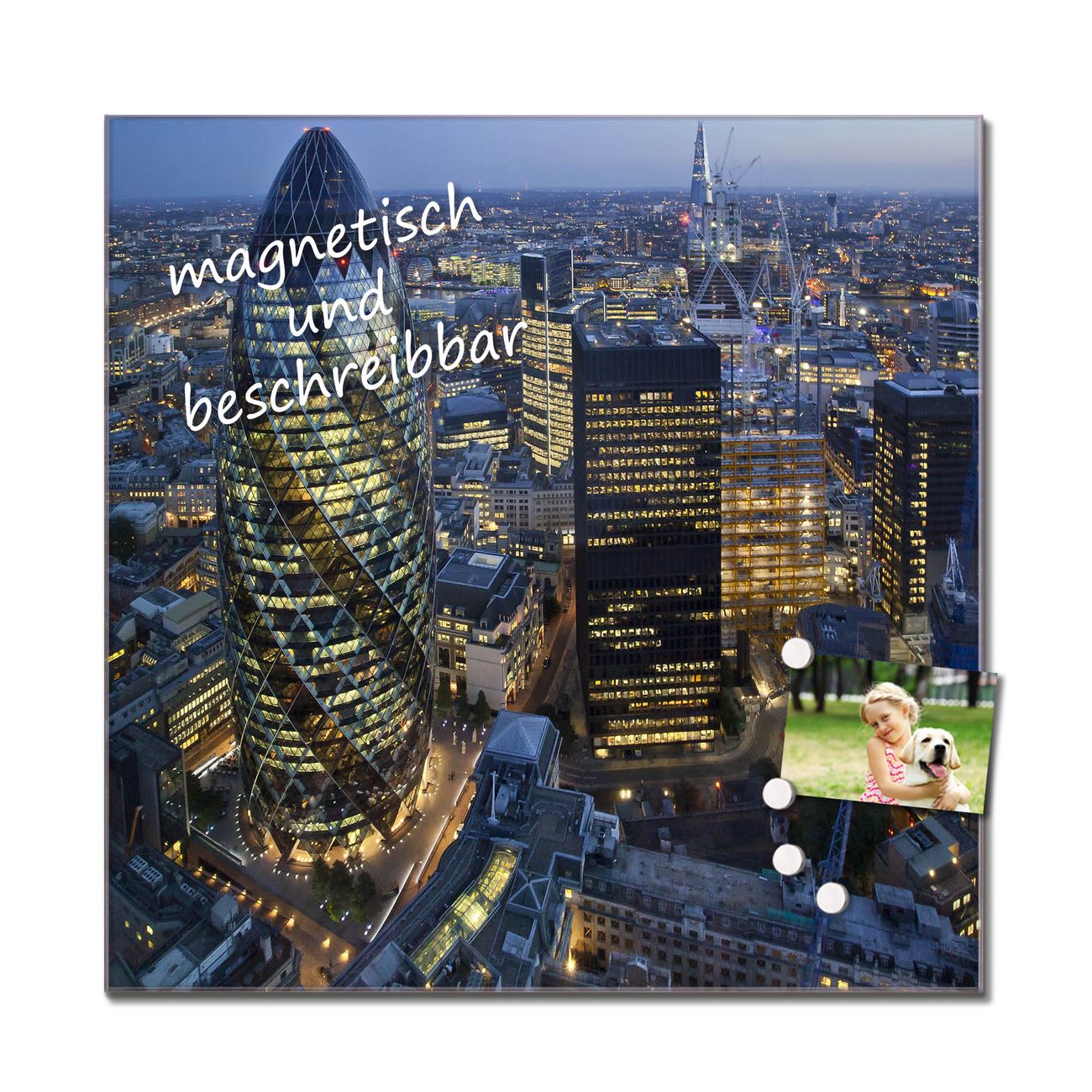 Bitte beachten Sie, dass ausschließlich spezielle Magnete an der Glastafel haften! Wir empfehlen banjado Neodym Magnete, diese sind durch uns auf Wirksamkeit geprüft.