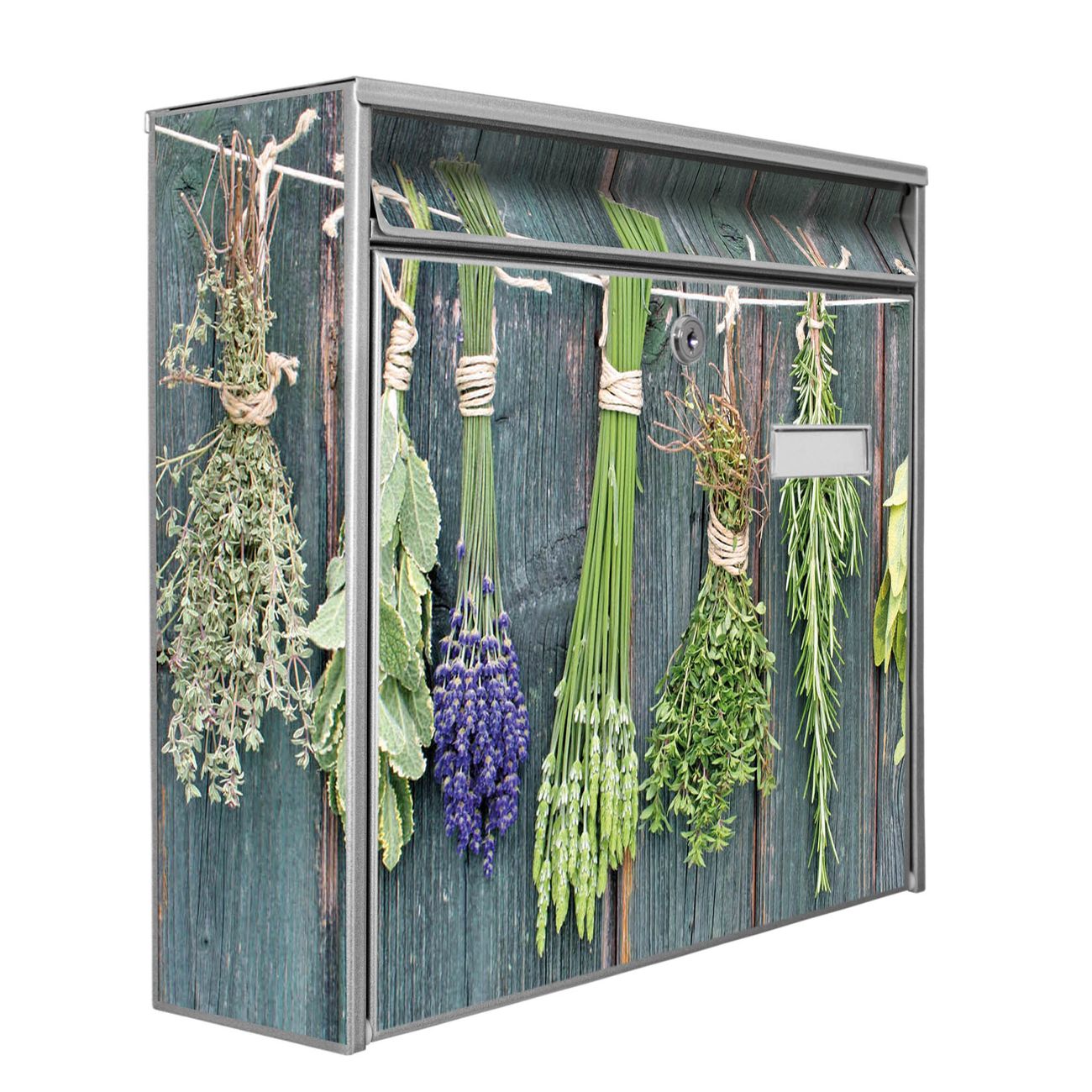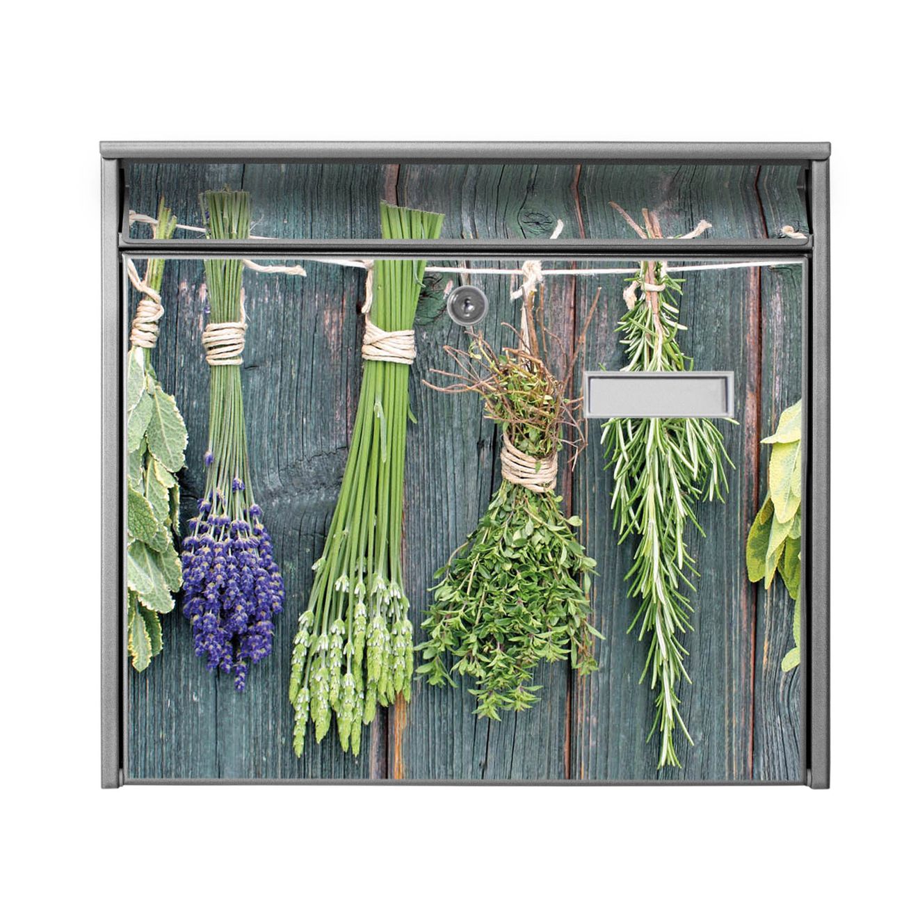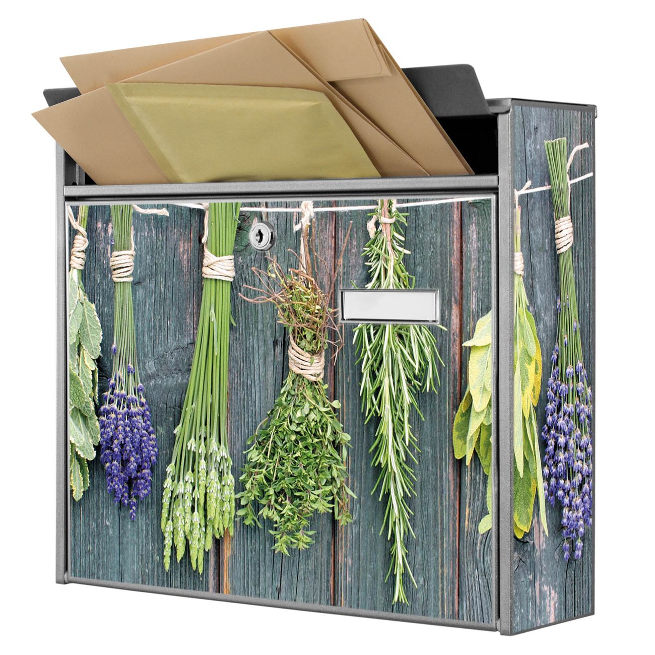 Der Burg Wächter Mail Briefkasten mit Motiv Acht Kräuter bietet Ihnen mit seinem Fassungsvermögen genügend Platz auch für große A4 Sendungen. Auf Wunsch können Sie bei uns den passenden Standfuß kaufen und so aus dem Wandbriefkasten einen Standbriefkasten machen. Wir bieten Ihnen ebenfalls Namensschilder, bereits beschriftet oder frei zu beschriften, und verschiedene selbst gestaltete Bitte-Keine-Werbung-Aufkleber.
