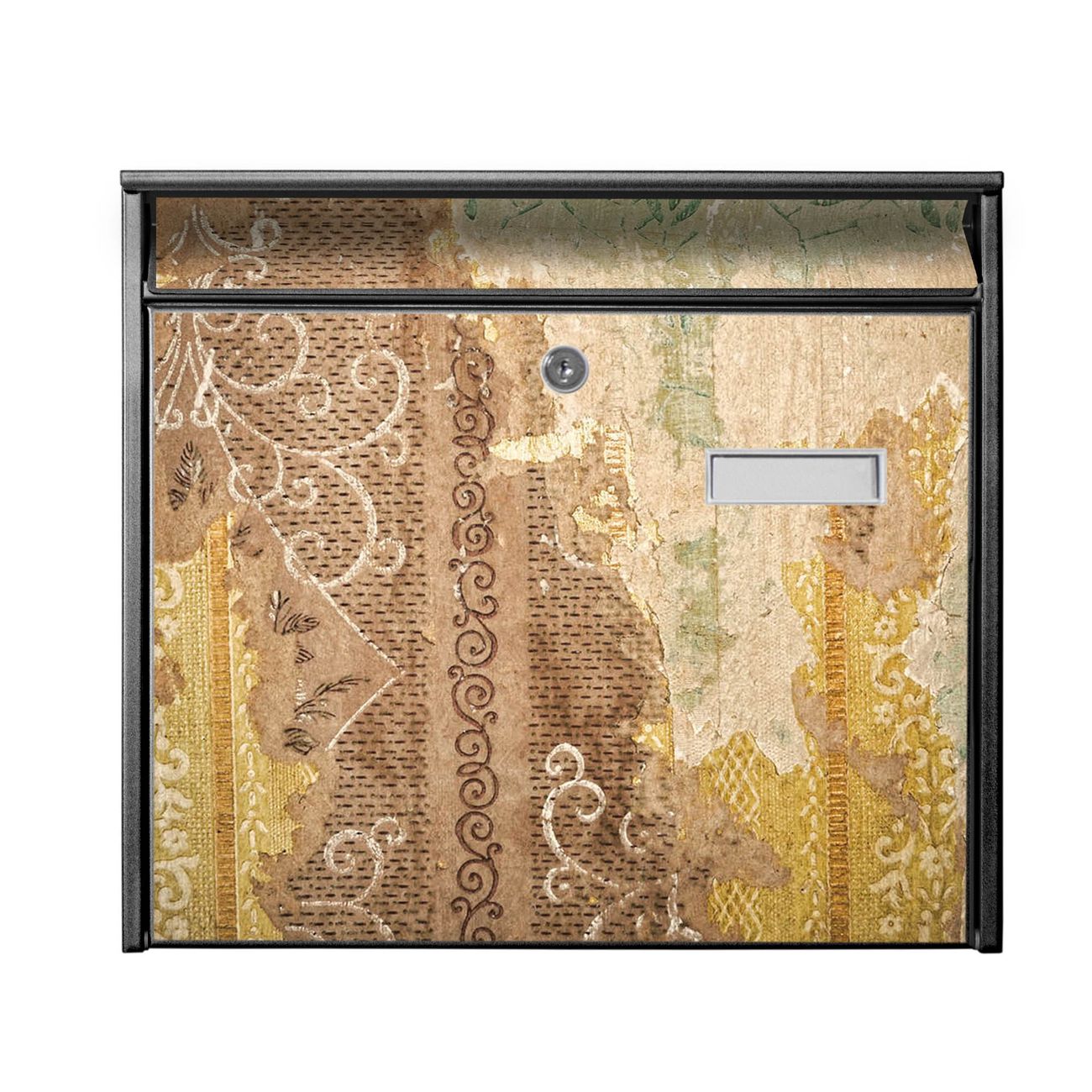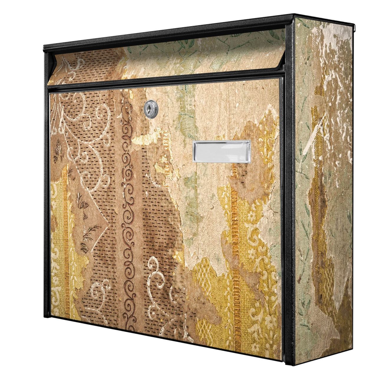 Der Postkasten mit Motiv Alte Tapeten hat ein sehr ansprechendes und zeitloses Design. Heben Sie Sich von der tristen grauen Masse ab, ohne auf Funktionalität zu verzichten. Die weite Öffnung ohne scharfe Kanten ermöglicht eine einfache Handhabung beim Entnehmen der Post. Die Größe bietet genügend Platz für Sendungen aller Art, der Einwurf fasst auch größere A4 Sendungen. Ihr Burg-Wächter Motivbriefkasten wird in Sachsen in einer kleinen Manufaktur von Hand veredelt. Die Motivfolie ist lösungsmittelfrei und schutzlaminiert, dies sorgt für einen langen Halt. Wir legen großen Wert auf die Verbindung von Funktionalität und Design.