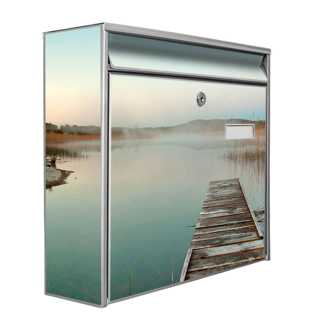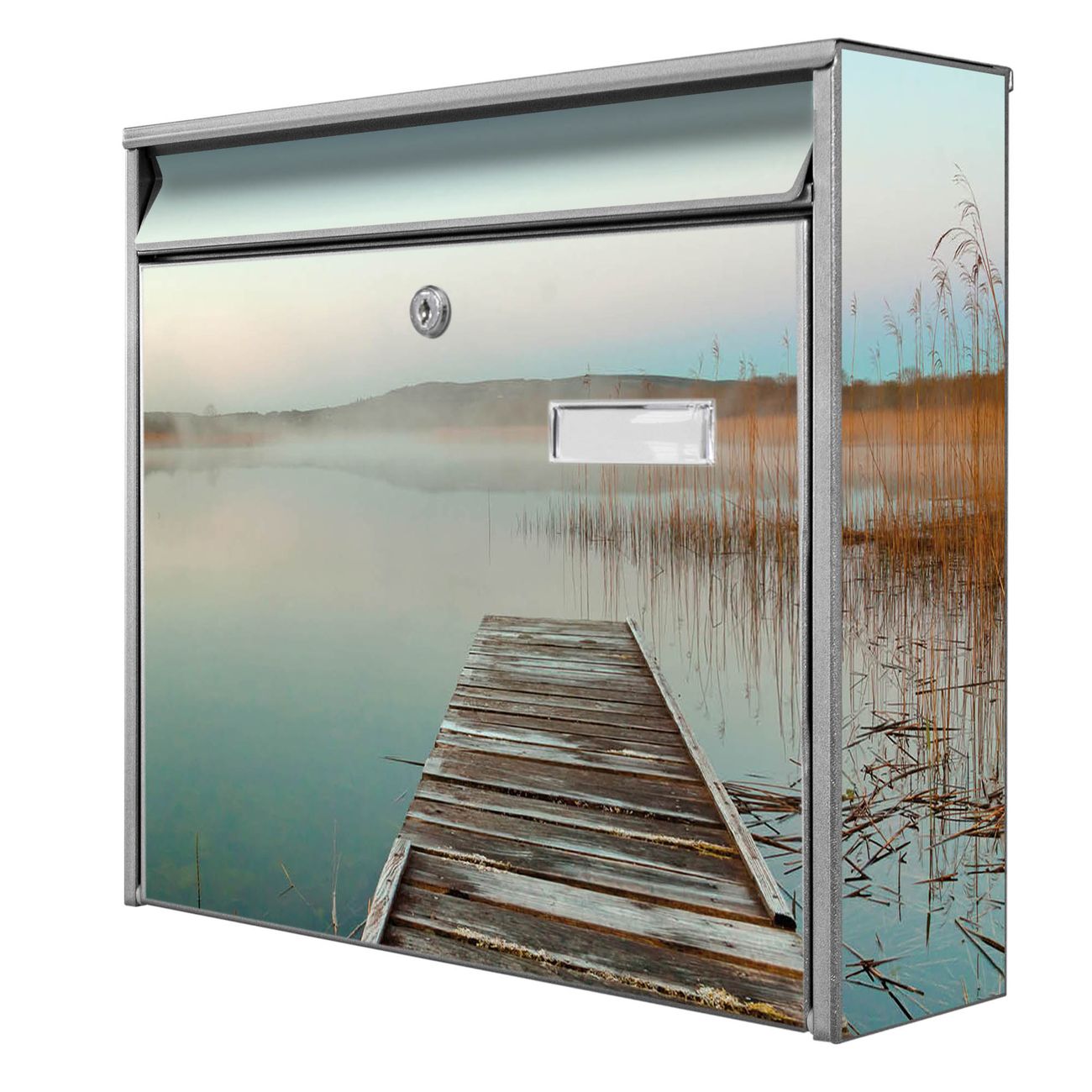 Der Burg Wächter Mail Briefkasten mit Motiv Alter Steg bietet Ihnen mit seinem Fassungsvermögen genügend Platz auch für große A4 Sendungen. Auf Wunsch können Sie bei uns den passenden Standfuß kaufen und so aus dem Wandbriefkasten einen Standbriefkasten machen. Wir bieten Ihnen ebenfalls Namensschilder, bereits beschriftet oder frei zu beschriften, und verschiedene selbst gestaltete Bitte-Keine-Werbung-Aufkleber.