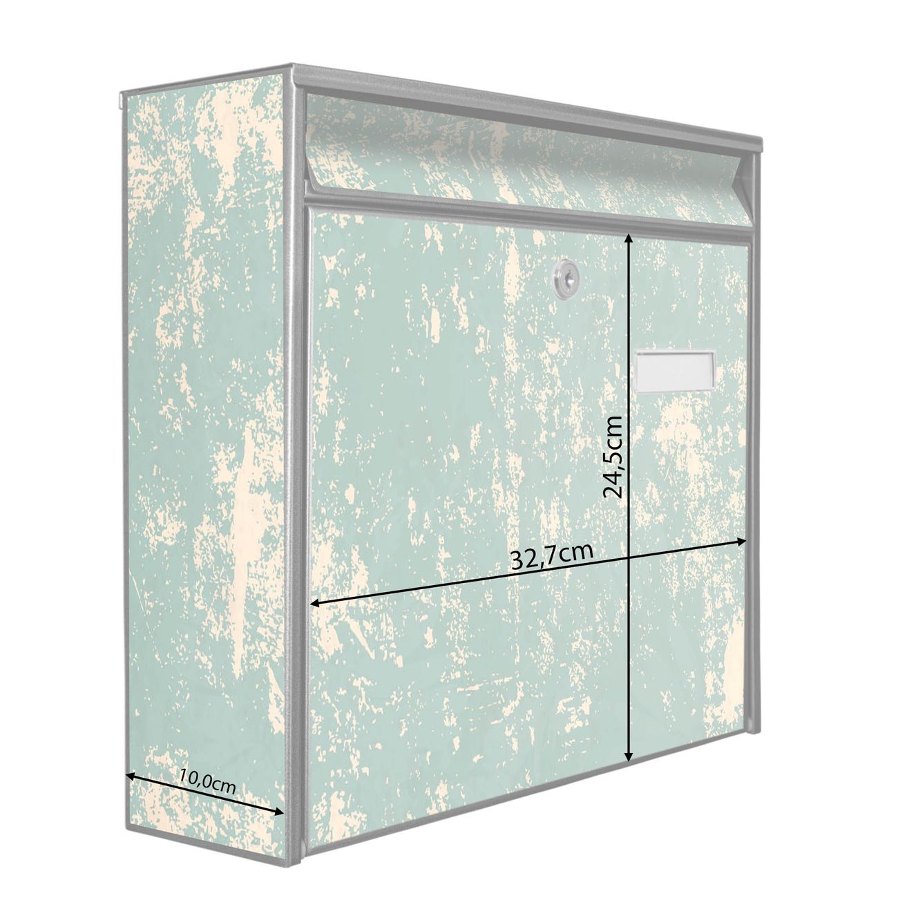 Die Größe des Briefkastens ist 36 x 32 x 10cm (BxHxT) groß. Das Motiv besteht aus einer wetter- und UV-festen Folie, die mit einem Schutzlaminat überzogen ist und Ihren Briefkasten zusätzlich vor Kratzern schützt. Sie erhalten 2 Schlüssel sowie das Montagematerial.