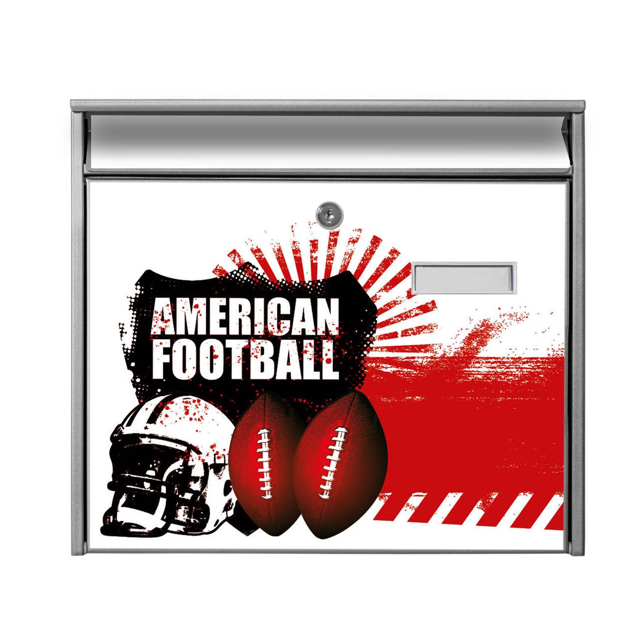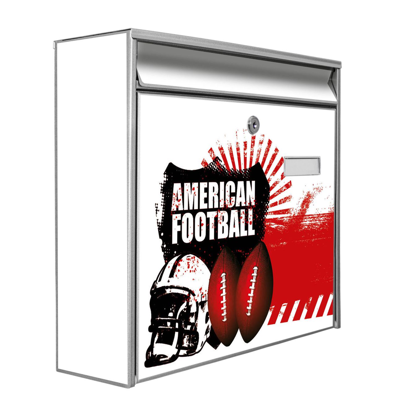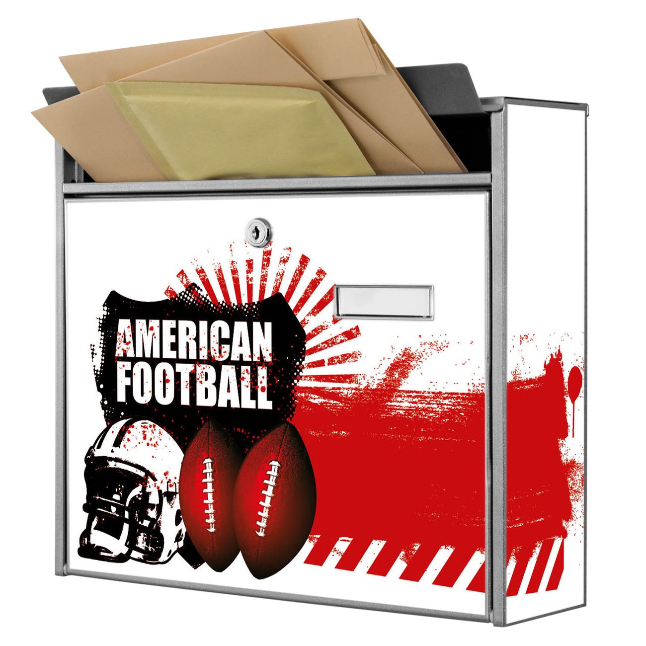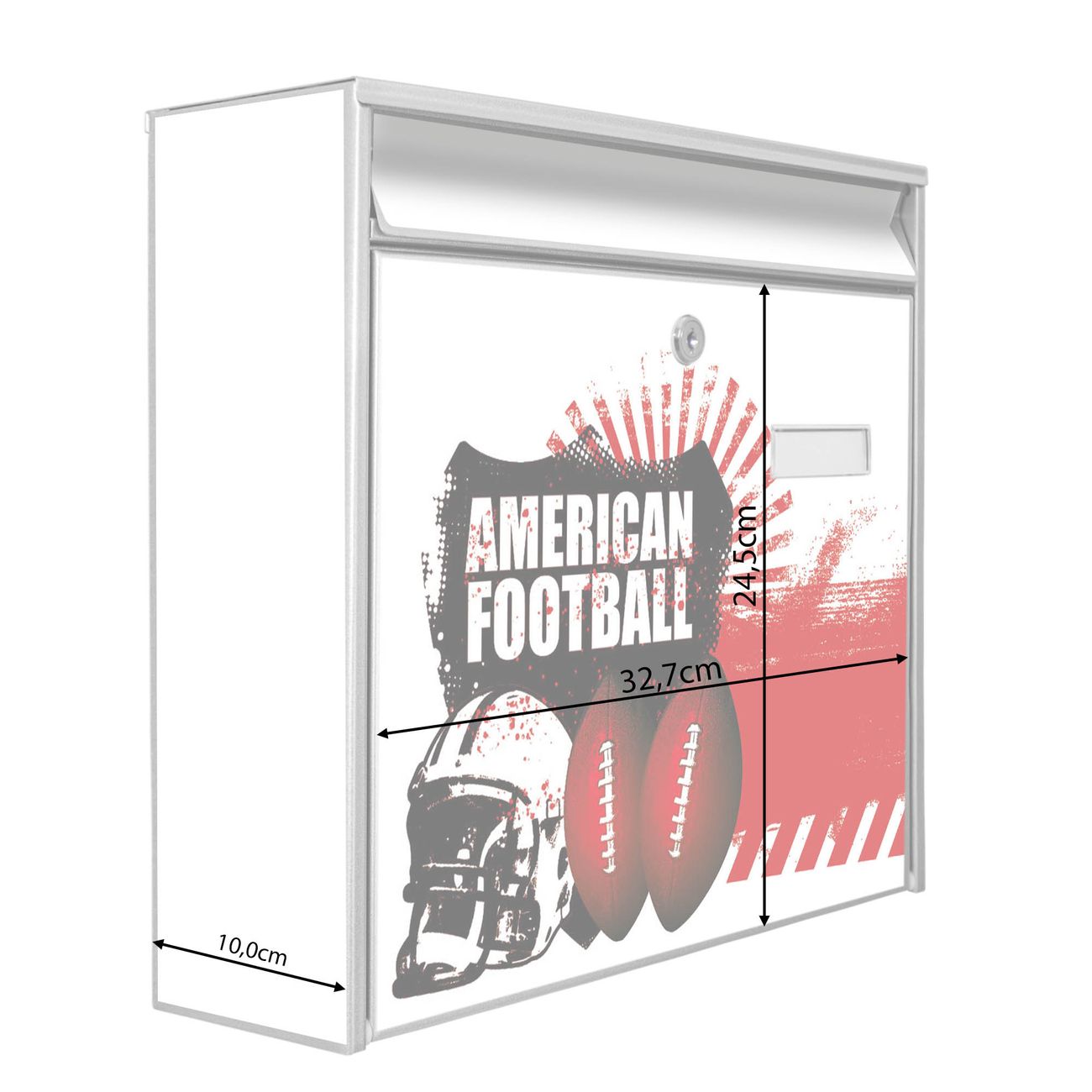 Der Burg Wächter Mail Briefkasten mit Motiv American Football bietet Ihnen mit seinem Fassungsvermögen genügend Platz auch für große A4 Sendungen. Auf Wunsch können Sie bei uns den passenden Standfuß kaufen und so aus dem Wandbriefkasten einen Standbriefkasten machen. Wir bieten Ihnen ebenfalls Namensschilder, bereits beschriftet oder frei zu beschriften, und verschiedene selbst gestaltete Bitte-Keine-Werbung-Aufkleber.