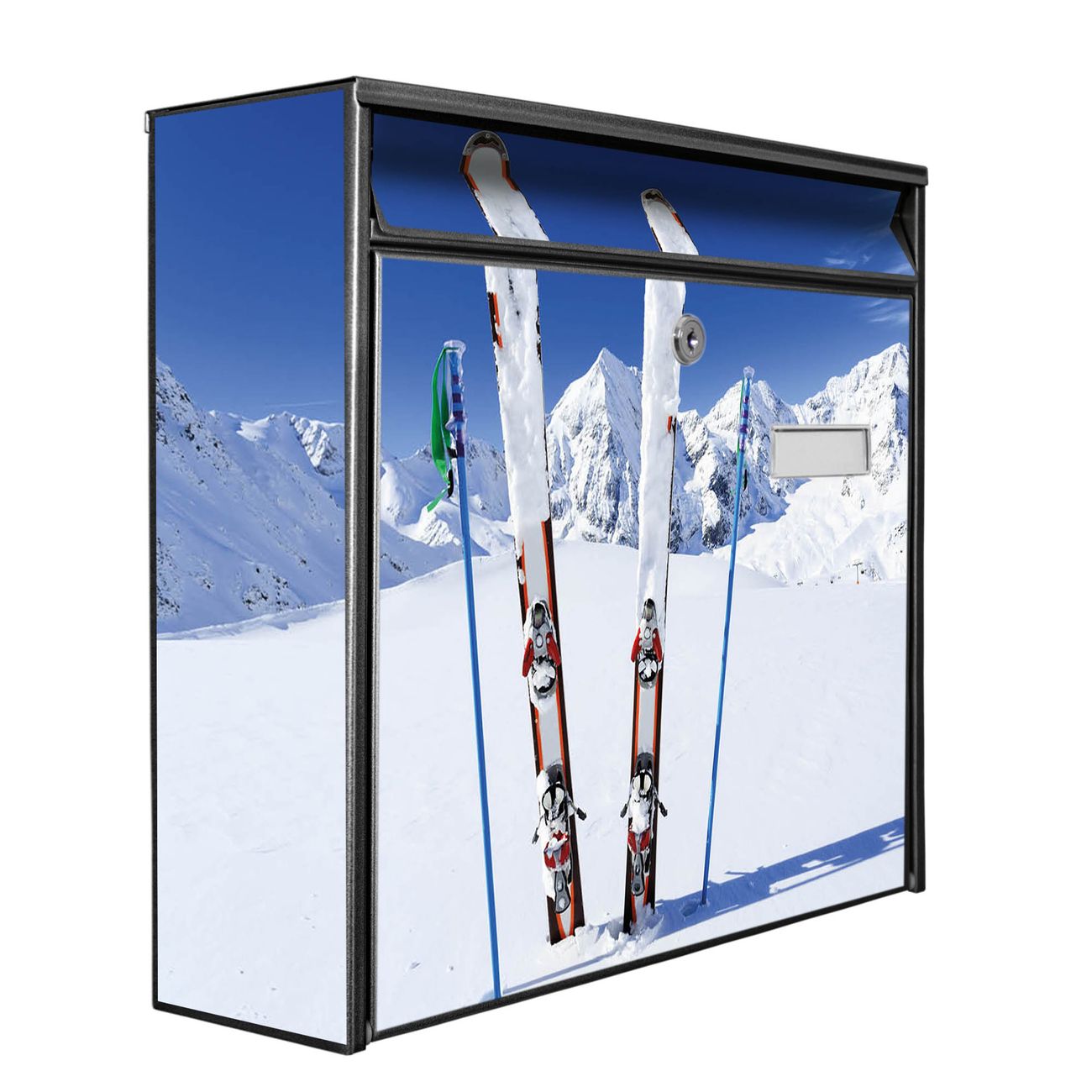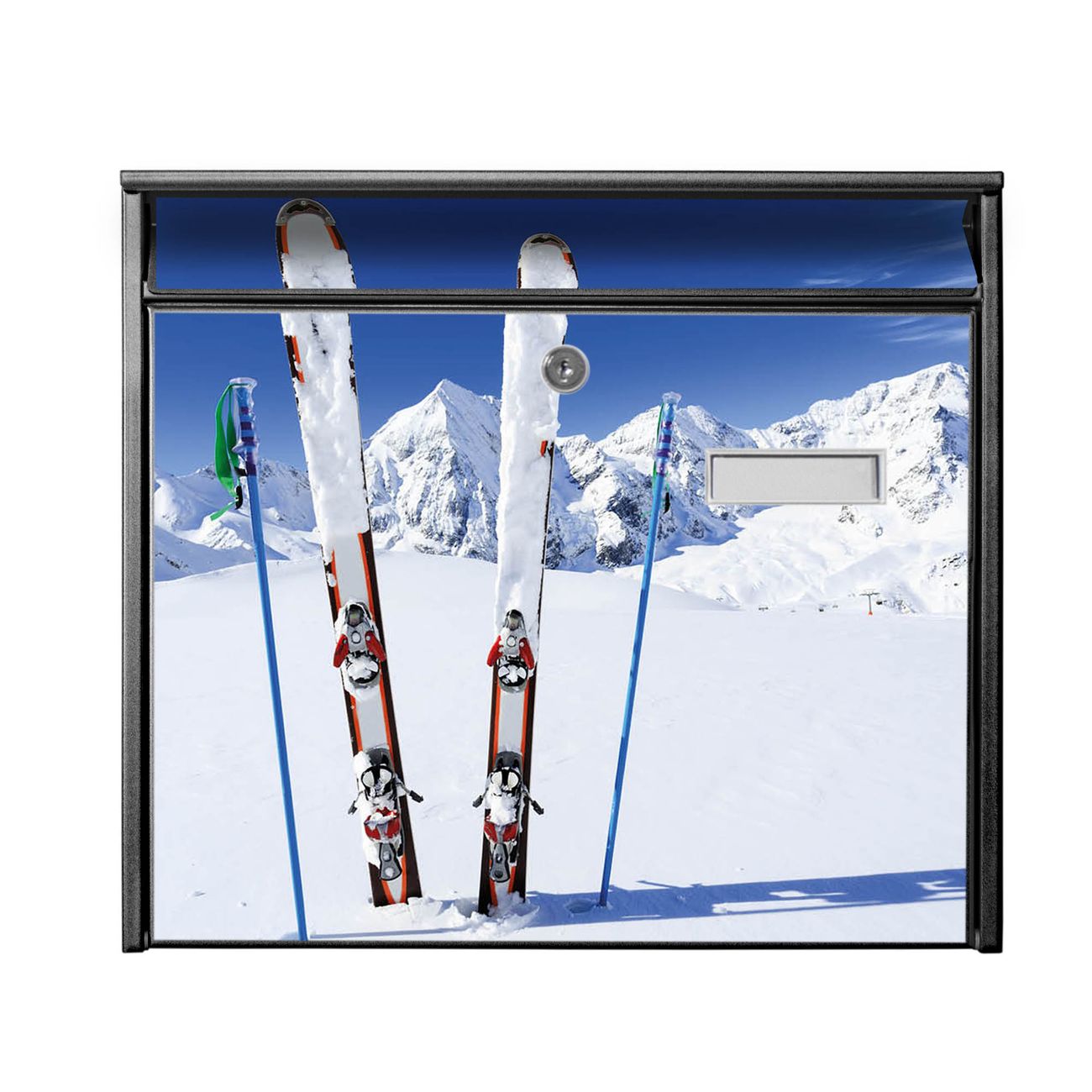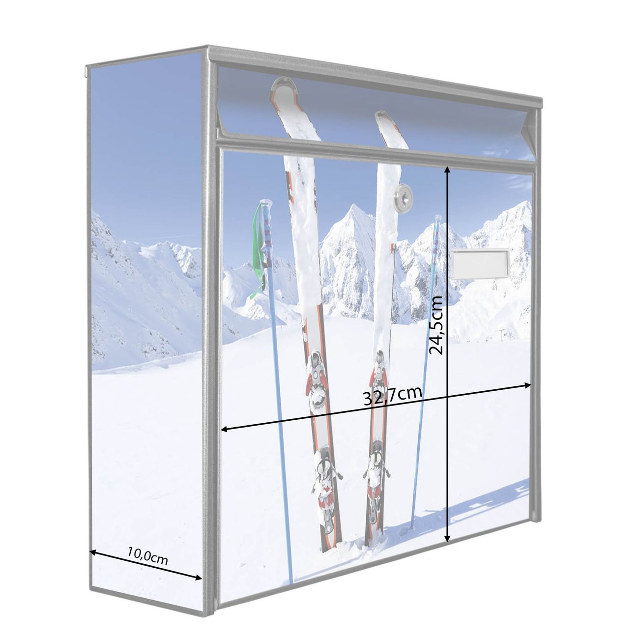 Der Burg Wächter Mail Briefkasten mit Motiv Apres Ski bietet Ihnen mit seinem Fassungsvermögen genügend Platz auch für große A4 Sendungen. Auf Wunsch können Sie bei uns den passenden Standfuß kaufen und so aus dem Wandbriefkasten einen Standbriefkasten machen. Wir bieten Ihnen ebenfalls Namensschilder, bereits beschriftet oder frei zu beschriften, und verschiedene selbst gestaltete Bitte-Keine-Werbung-Aufkleber.